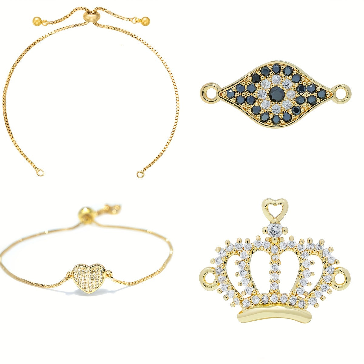 This DIY bracelet chain connector features two ends with rhinestones, perfect for creating your own unique jewelry. The brass slider allows for easy adjustment and a comfortable fit. Connectors include Cross, Love, Crown, and Four designs.