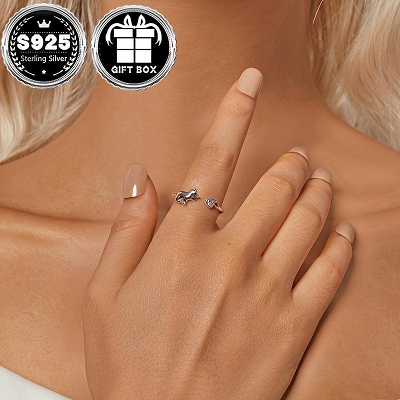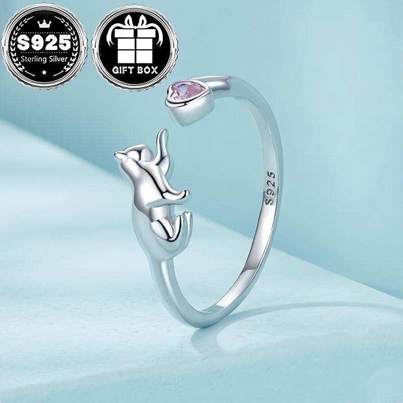 This stylish ring features a cat design in golden color, crafted with high-quality S925 sterling silver plating. It's perfect for casual wear or special events like Mother's Day parties.