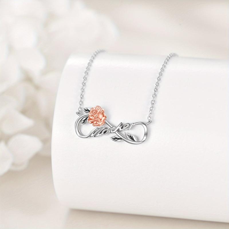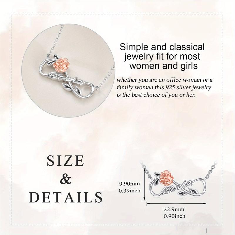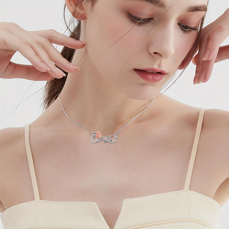 This beautiful pendant necklace features a rose design with synthetic zirconia accents. Made from 925 sterling silver, it is a perfect gift for women and men. The necklace has an adjustable chain for a comfortable fit.