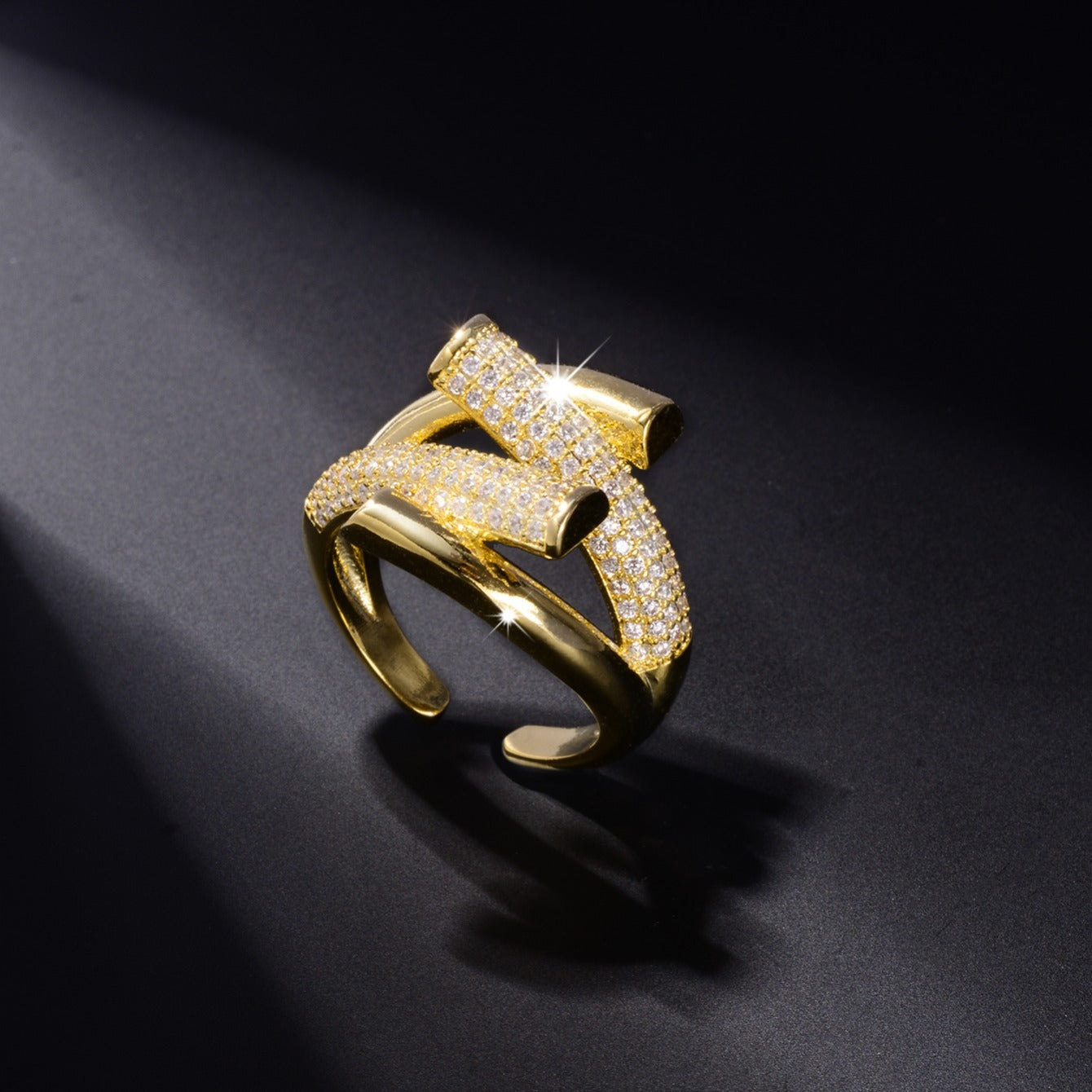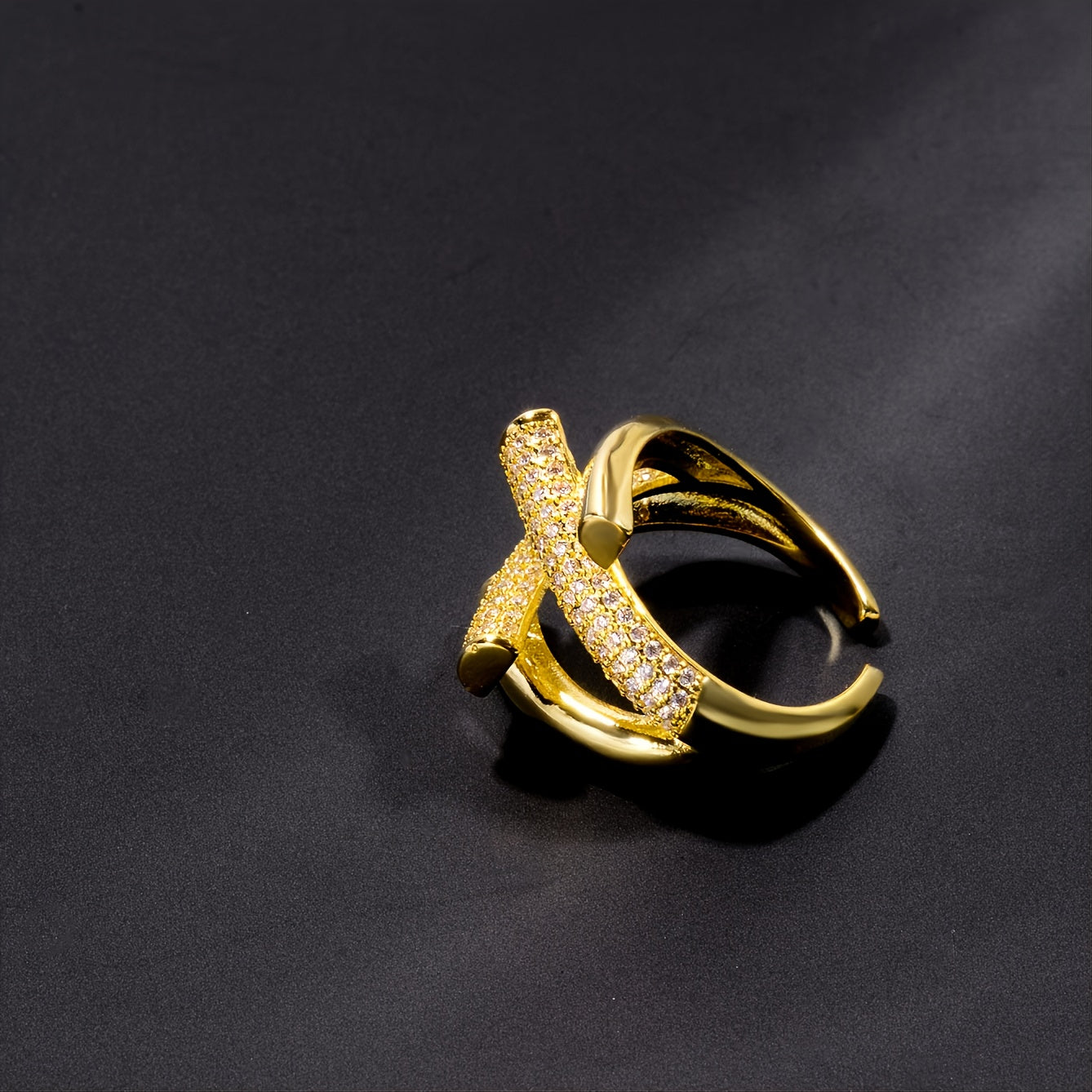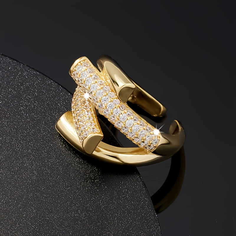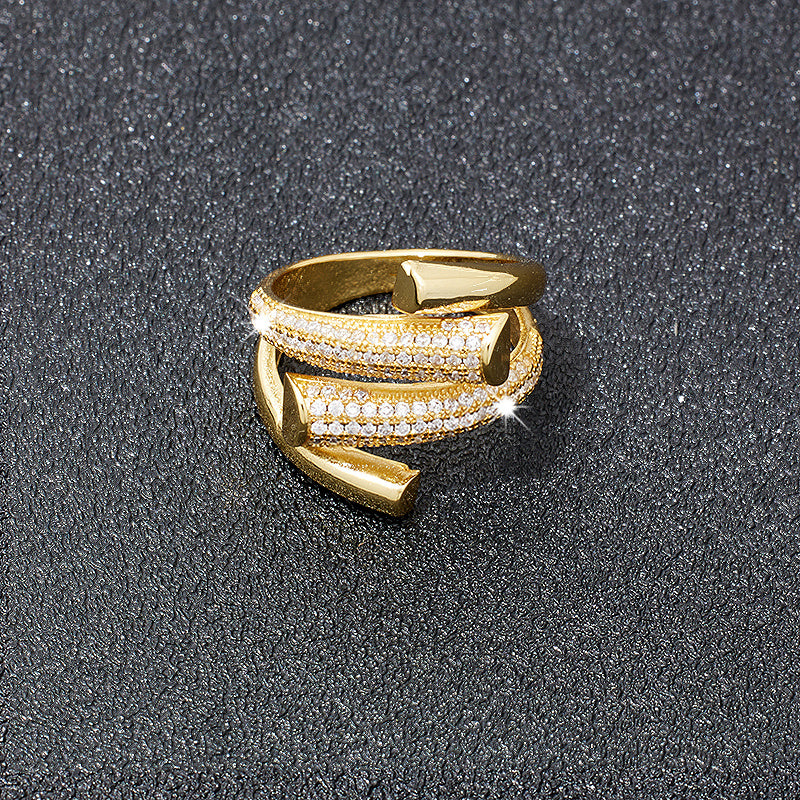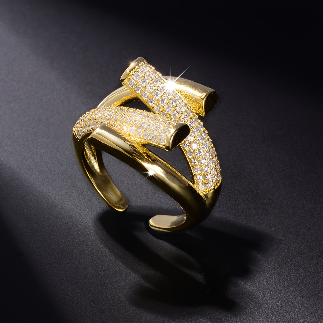 This stylish copper ring features rhinestones and an adjustable opening, making it a perfect accessory for men.