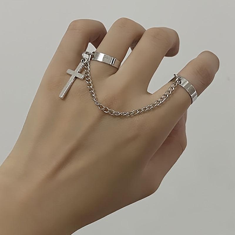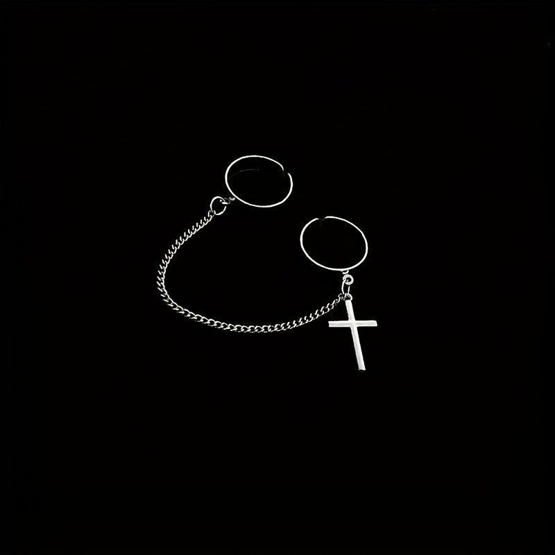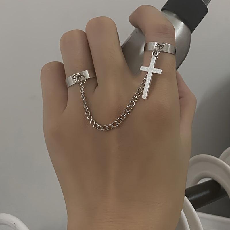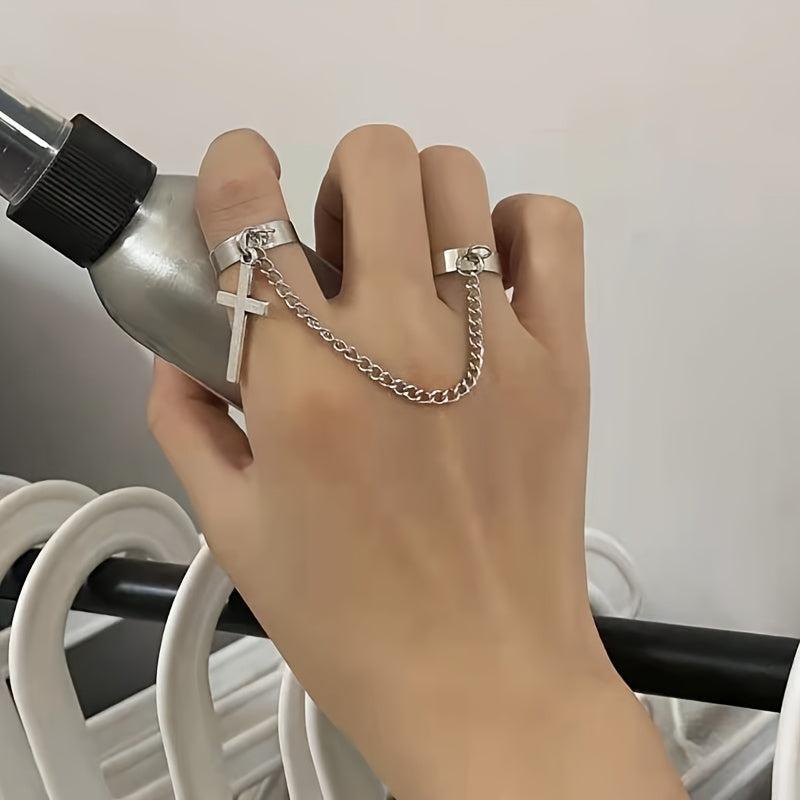 Adjustable Cross Connect Two Fingers Ring Men's Jewelry