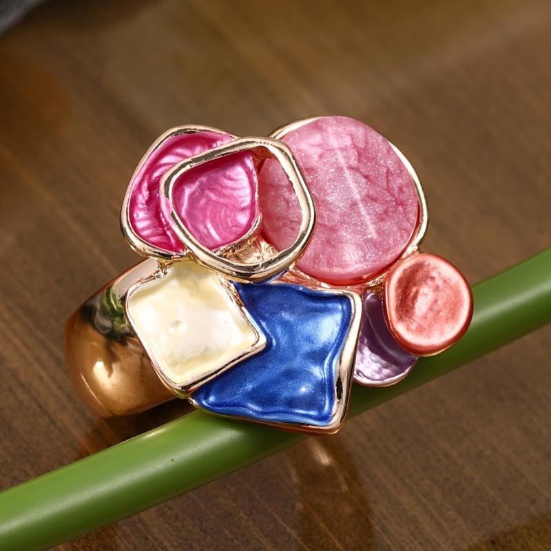 Elegant retro bohemian ring with drop painted enamel design. Perfect for daily wear, parties, and banquets. A unique gift idea for anyone.