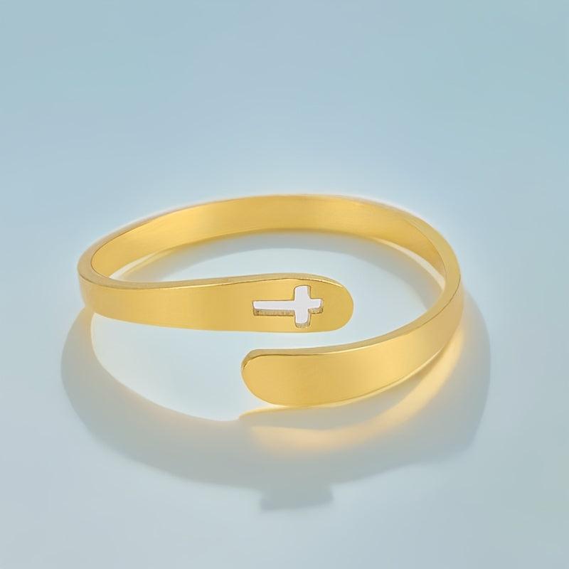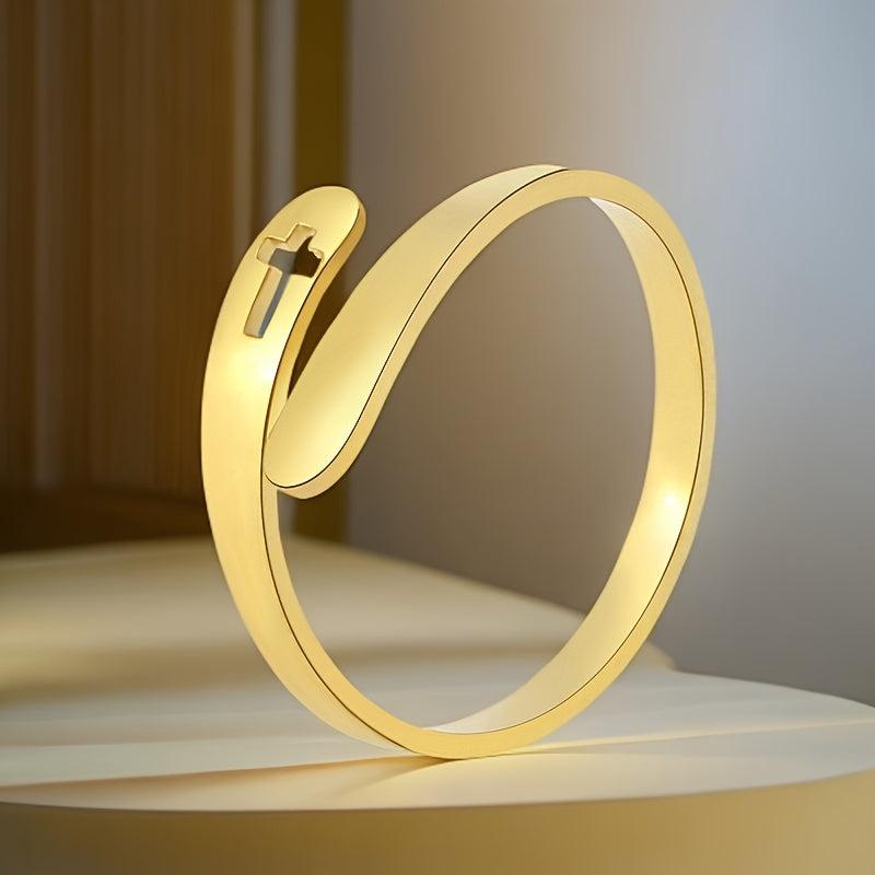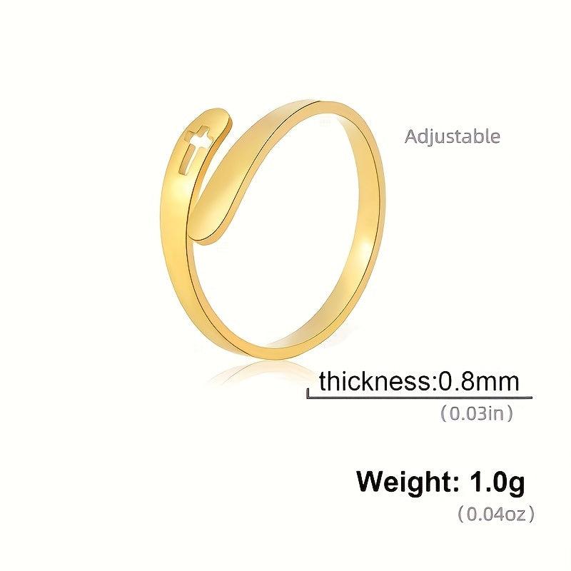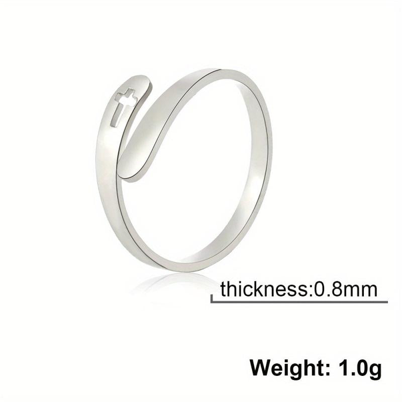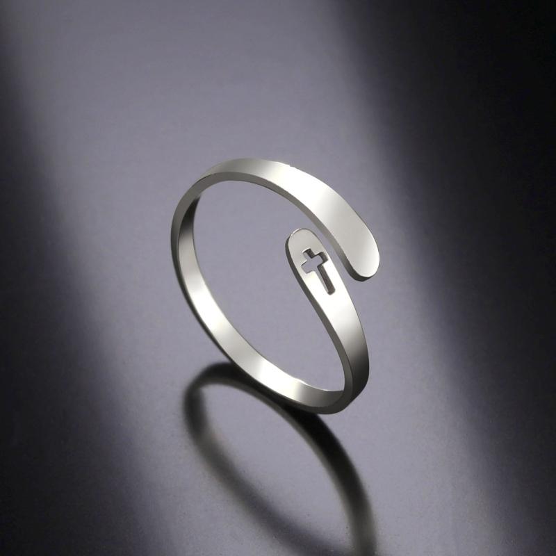 Embrace the boho style with this adjustable open band ring featuring a hollow cross design. Crafted from stainless steel, this handcrafted jewelry piece is perfect for couples.