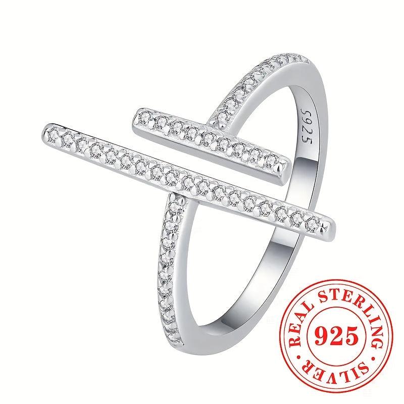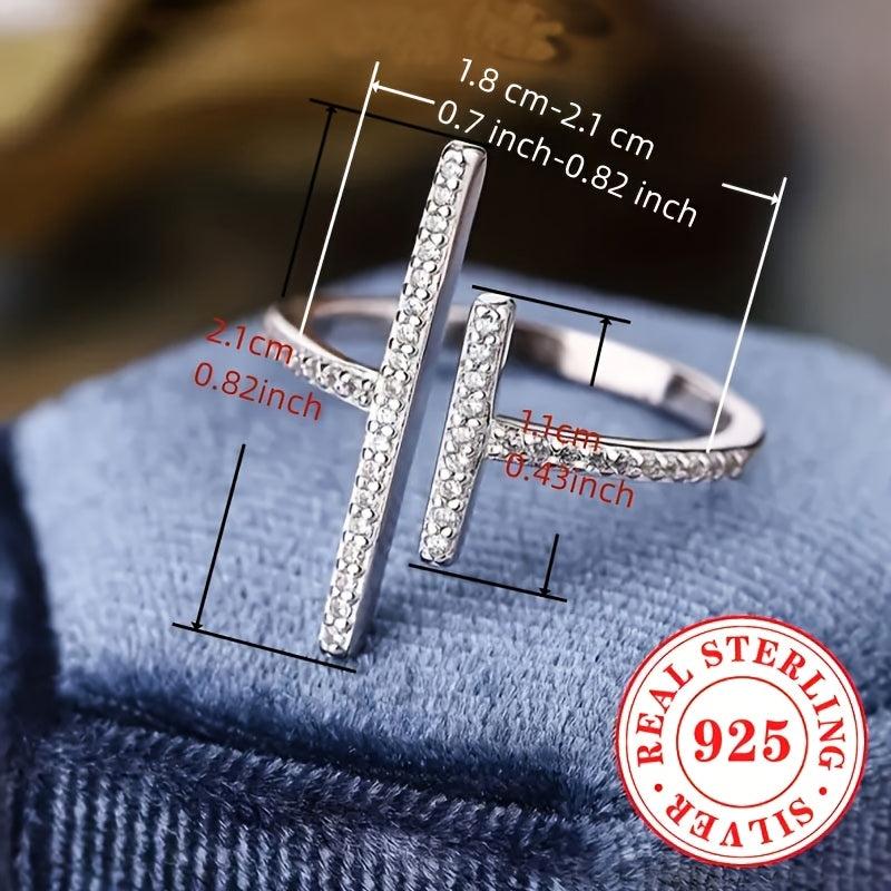 Elevate your casual attire with this stylish open ring featuring synthetic zirconia set in S925 sterling silver. Perfect for everyday wear.