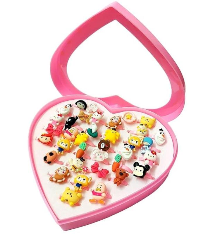 This set includes 36 rings for girls in assorted designs. Perfect for girls who love to accessorize.