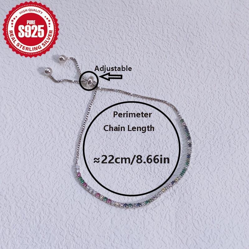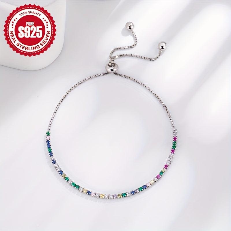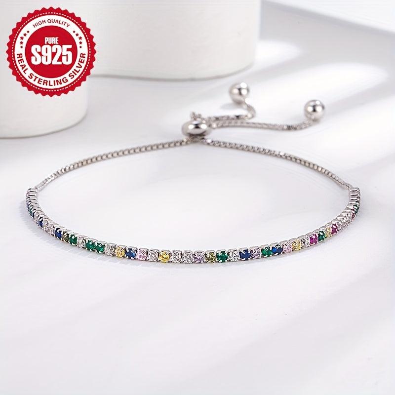 Adjustable S925 Silver Multicolor Zirconia Tennis Bracelet
