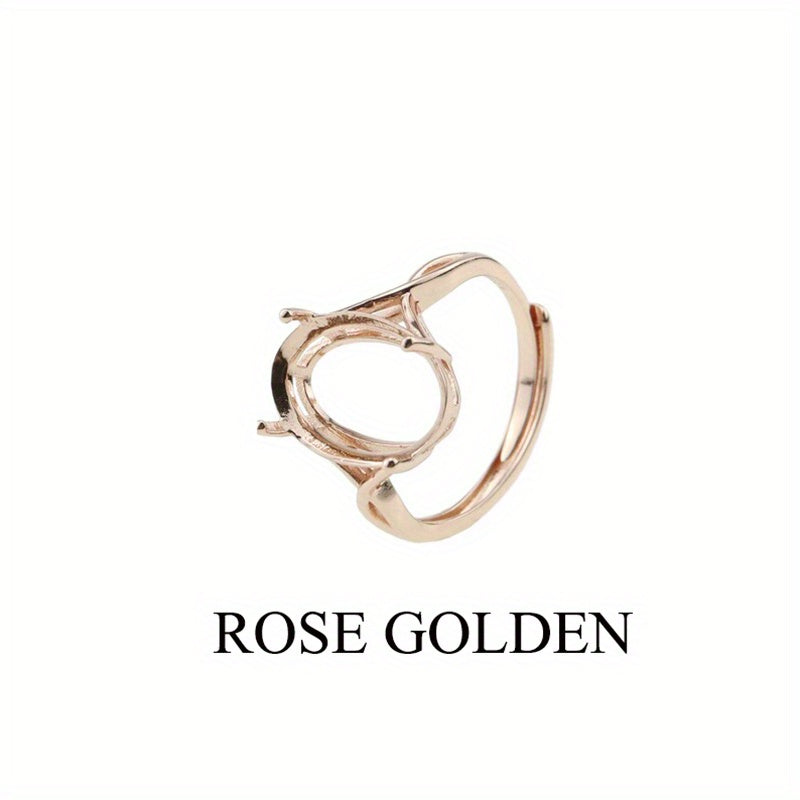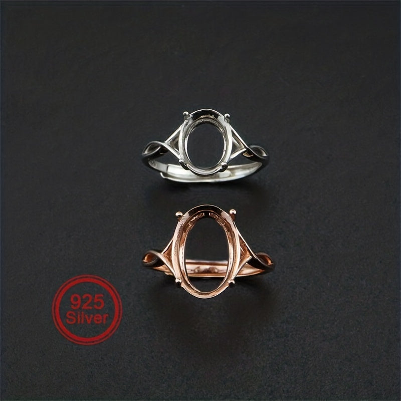 Elegant 925 sterling silver ring with size split shank, oval prong bezel, and rose golden finish. Ideal for gemstone fitting.