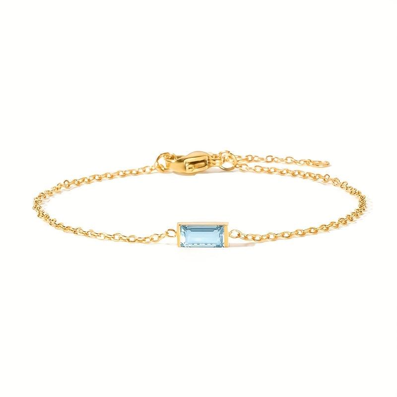 Elevate your style with this sparkling square zirconia bracelet plated in 14K gold. The adjustable design ensures a perfect fit and adds a touch of elegance to any outfit.