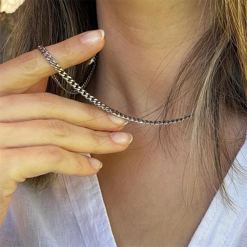 This stainless steel Cuban chain necklace is perfect for adding a touch of punk and minimalist style to your look. It is suitable for both women and men, making it a versatile accessory for everyday wear or special occasions.