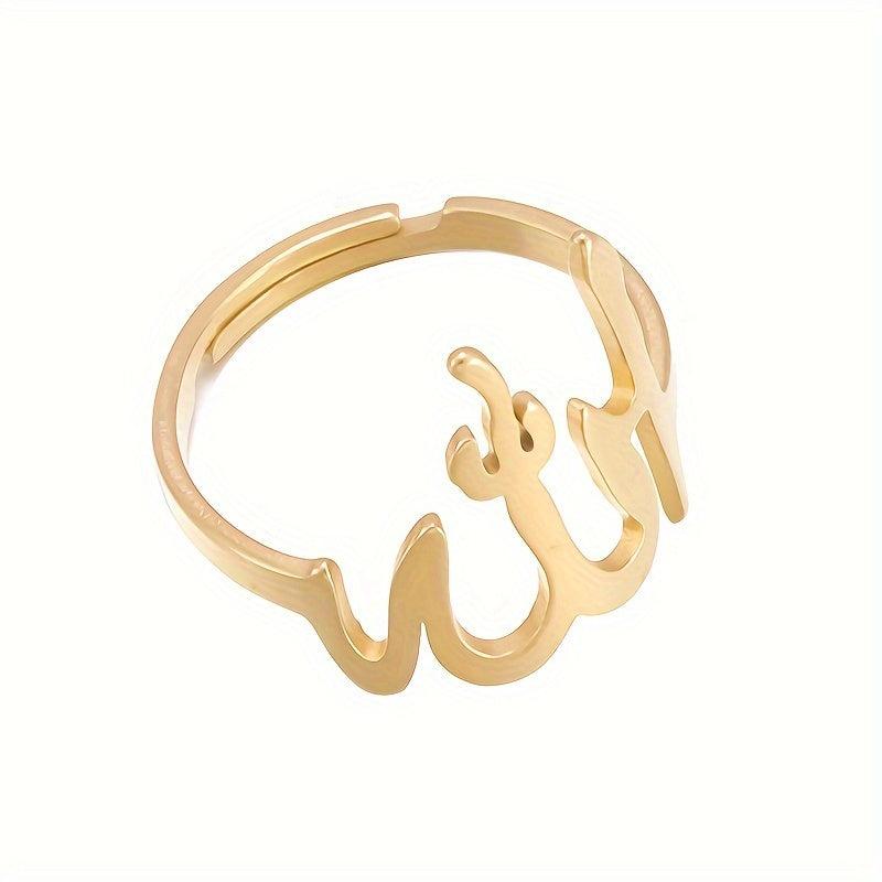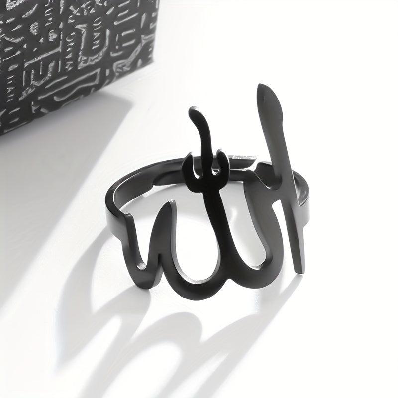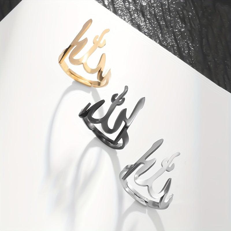 This ring features a tribal Islamic design with Allah inscription. Made of stainless steel with 18K gold plating, it's suitable for daily wear.