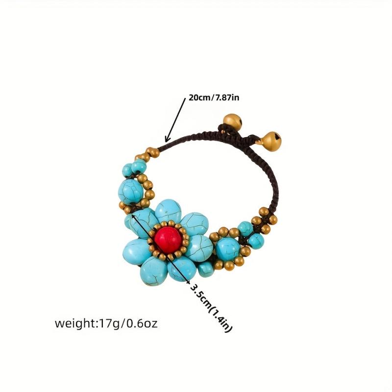 Bohemian style bracelet handcrafted with natural stone beads and golden accents on wax cord. Perfect summer accessory!
