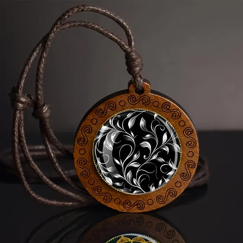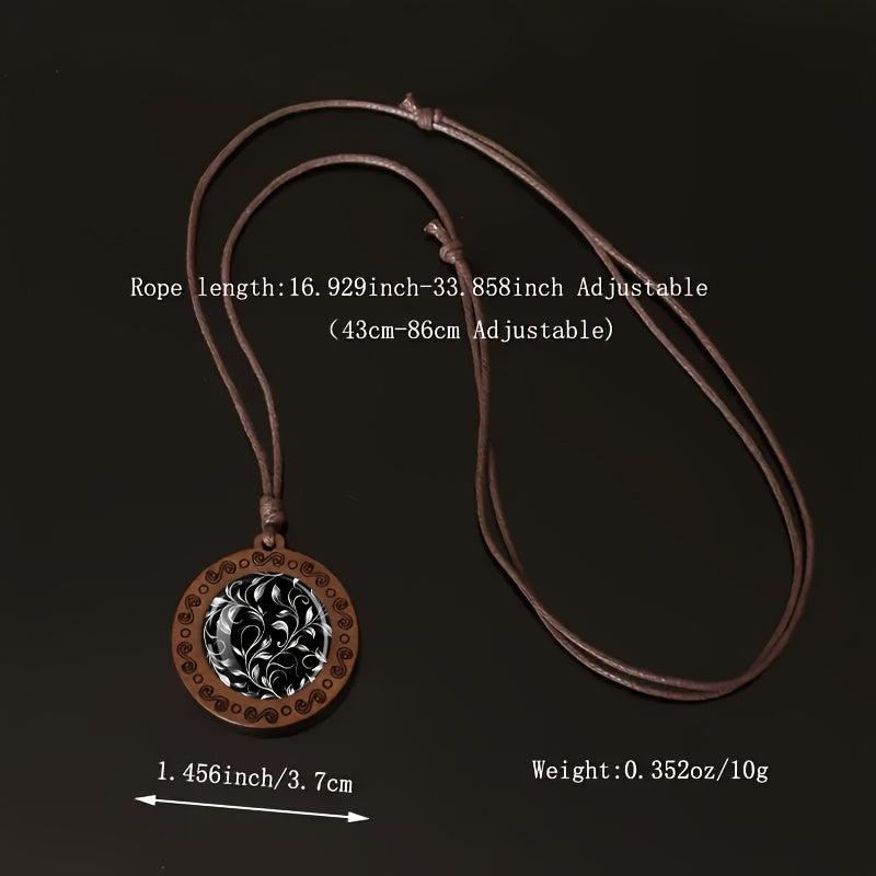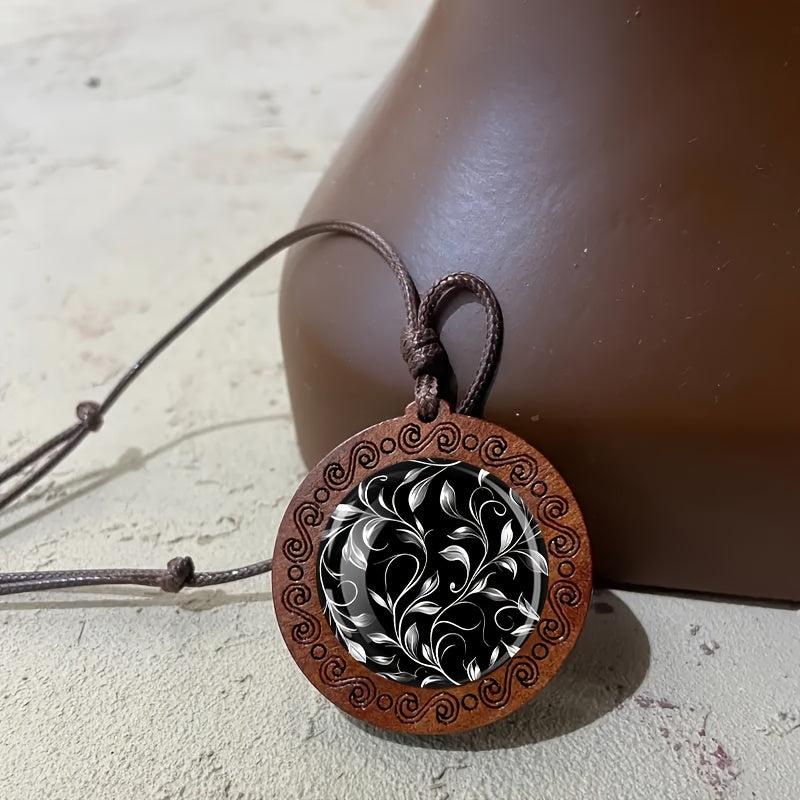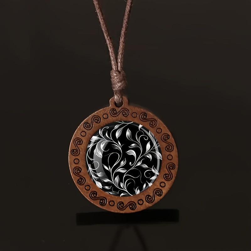 This wooden pendant necklace features a vine pattern and is perfect for everyday wear or as a gift. It comes with an adjustable cord suitable for both men and women.