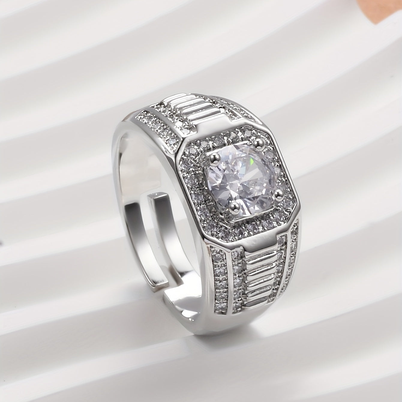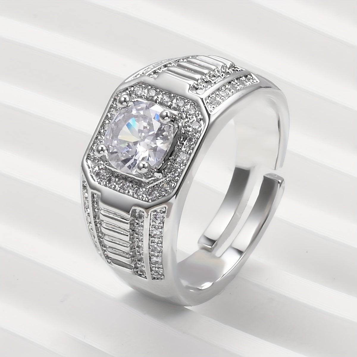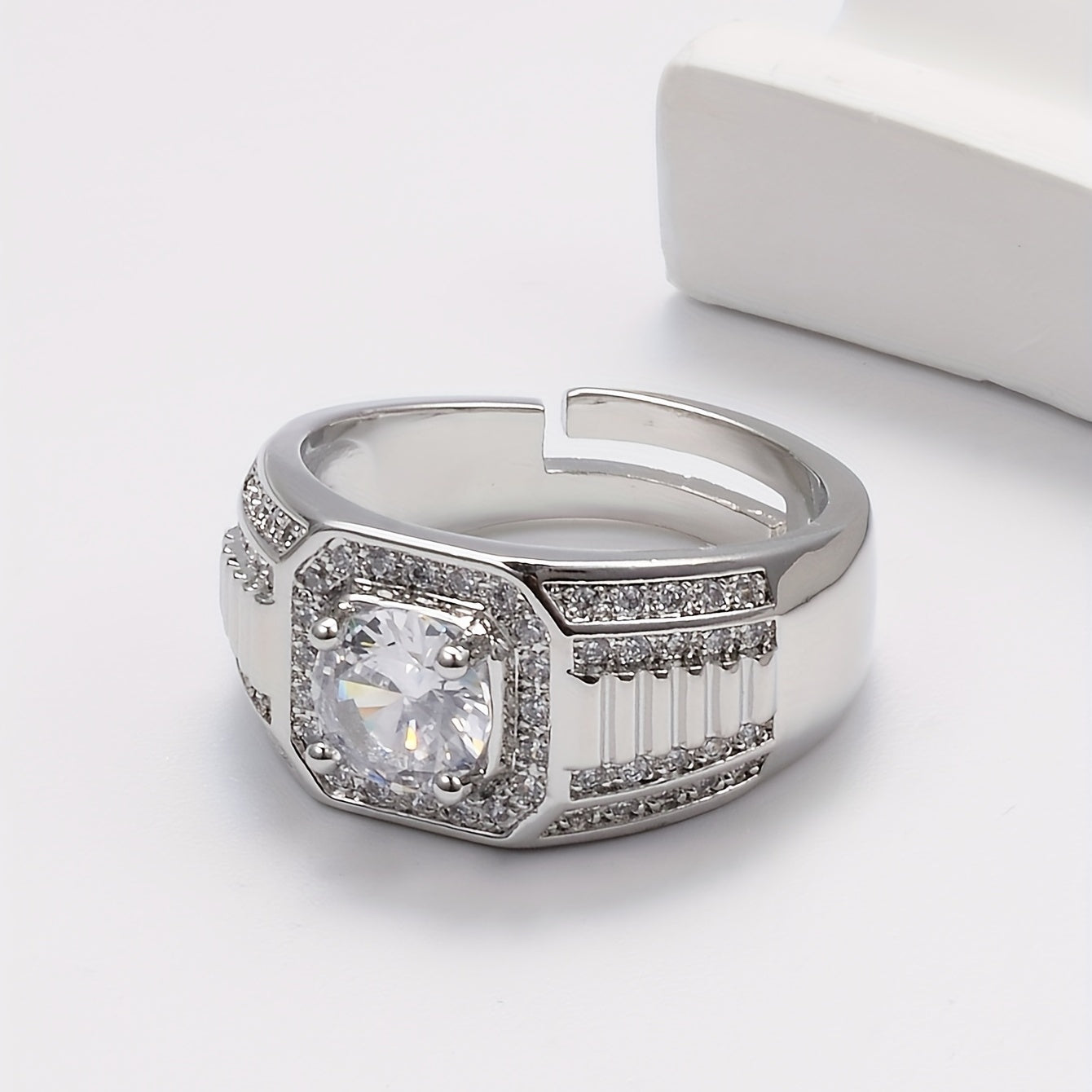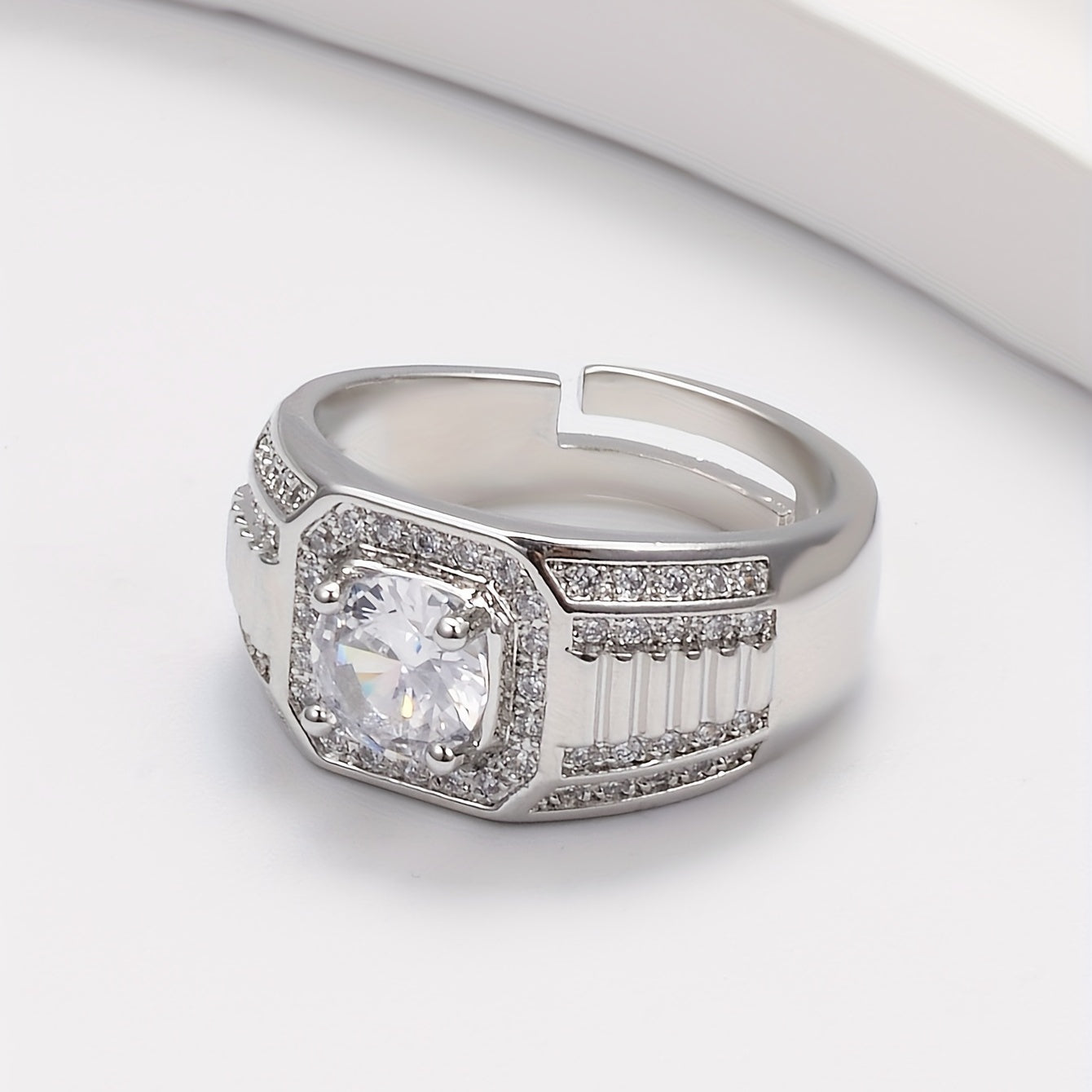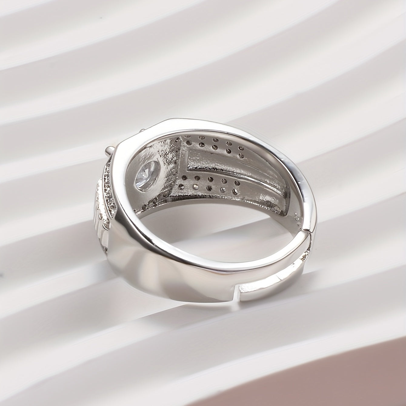 Elevate your style with this wide ring featuring shining zircon inlays. Perfect for parties or everyday wear, this adjustable jewelry complements any outfit.