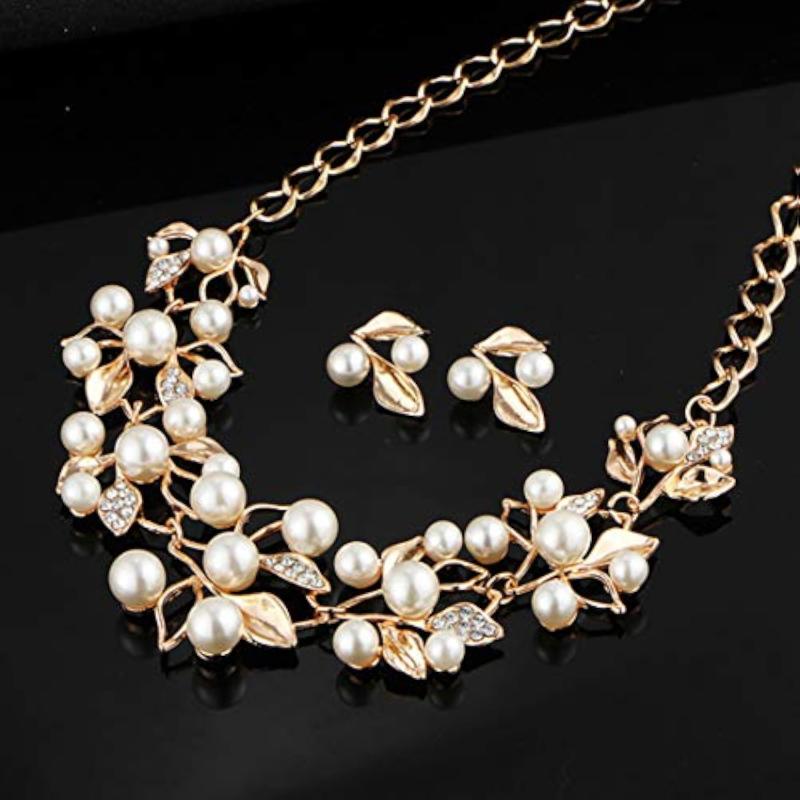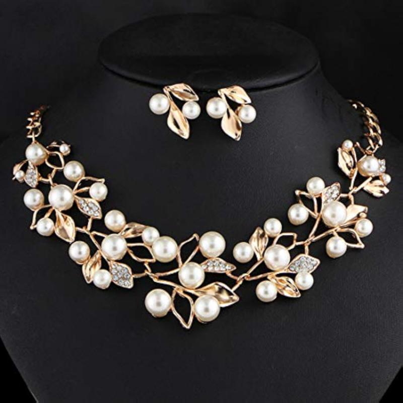Elegant AD & Pearl Studded Mesmerizing Necklace Set with Bracelet, perfect for all occasions.