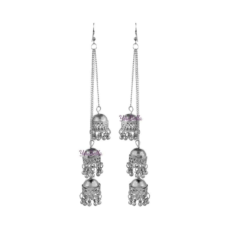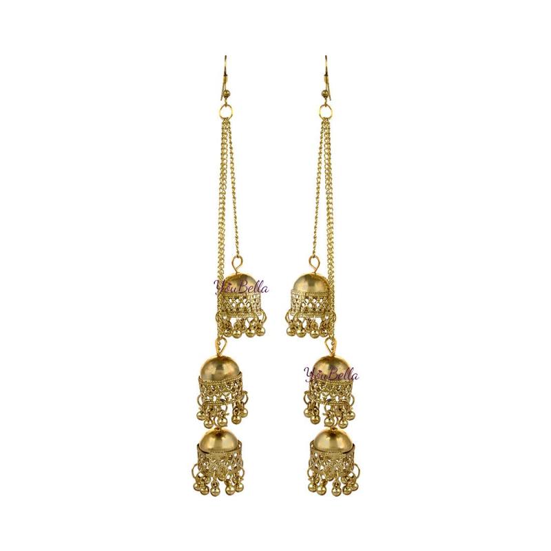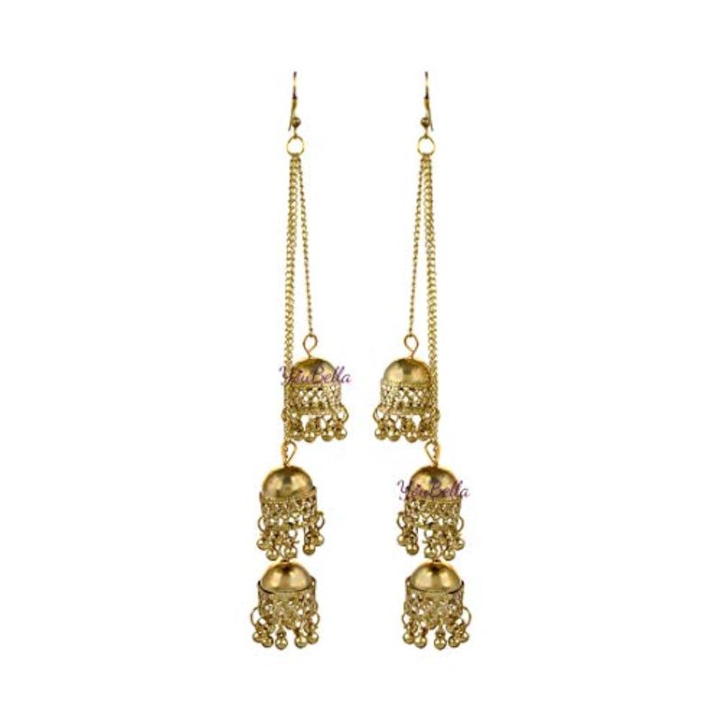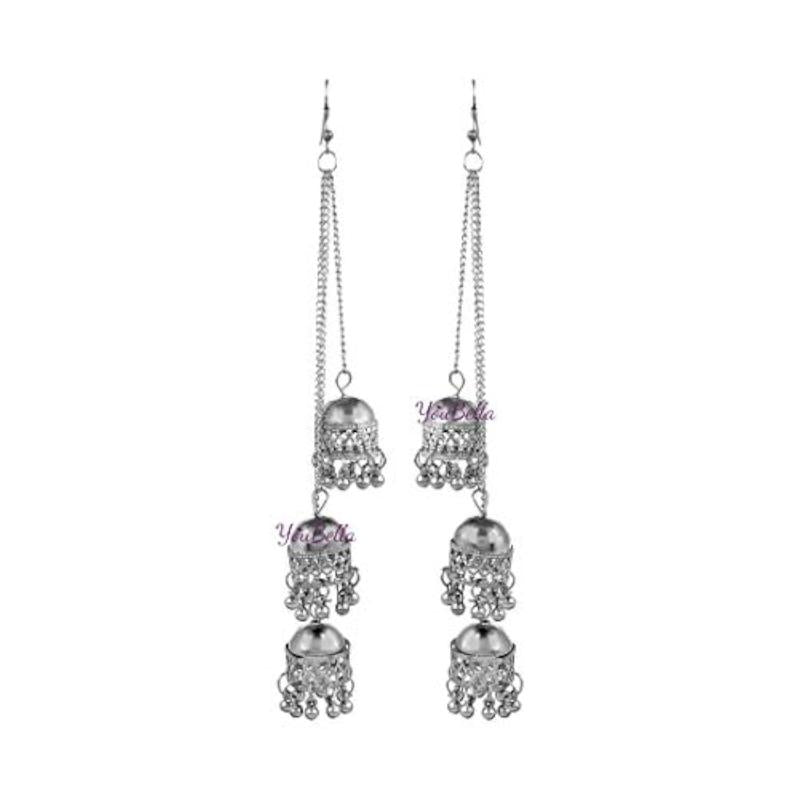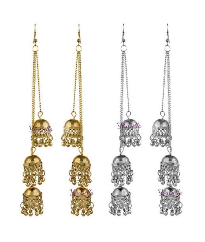Enhance your style with this elegant set of two Afghani Jhumka earrings. Perfect for any occasion.