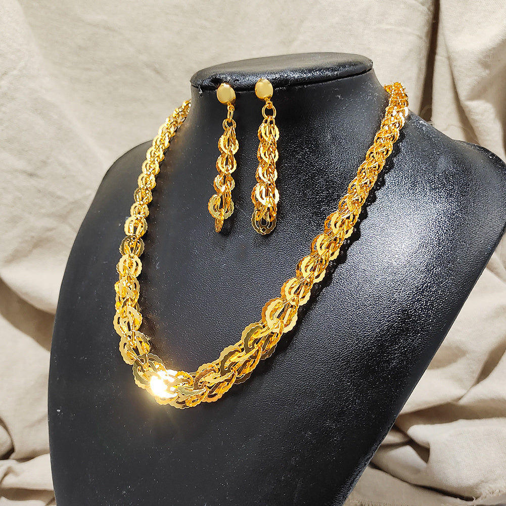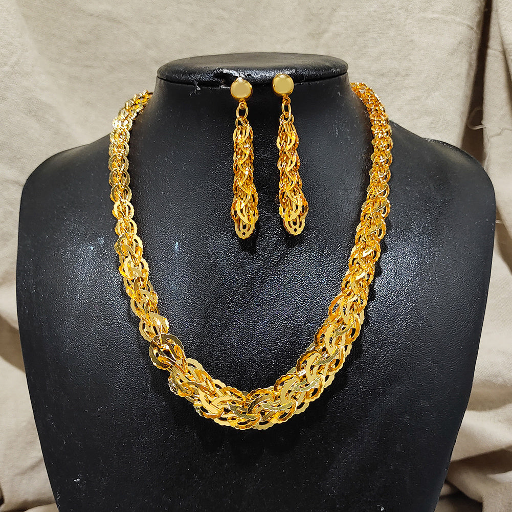 Elegant African-inspired jewelry set featuring a golden finish. This set is perfect for women and makes a great gift for Christmas.