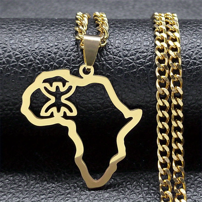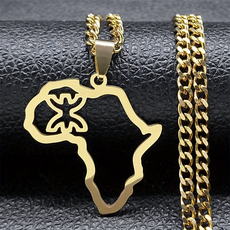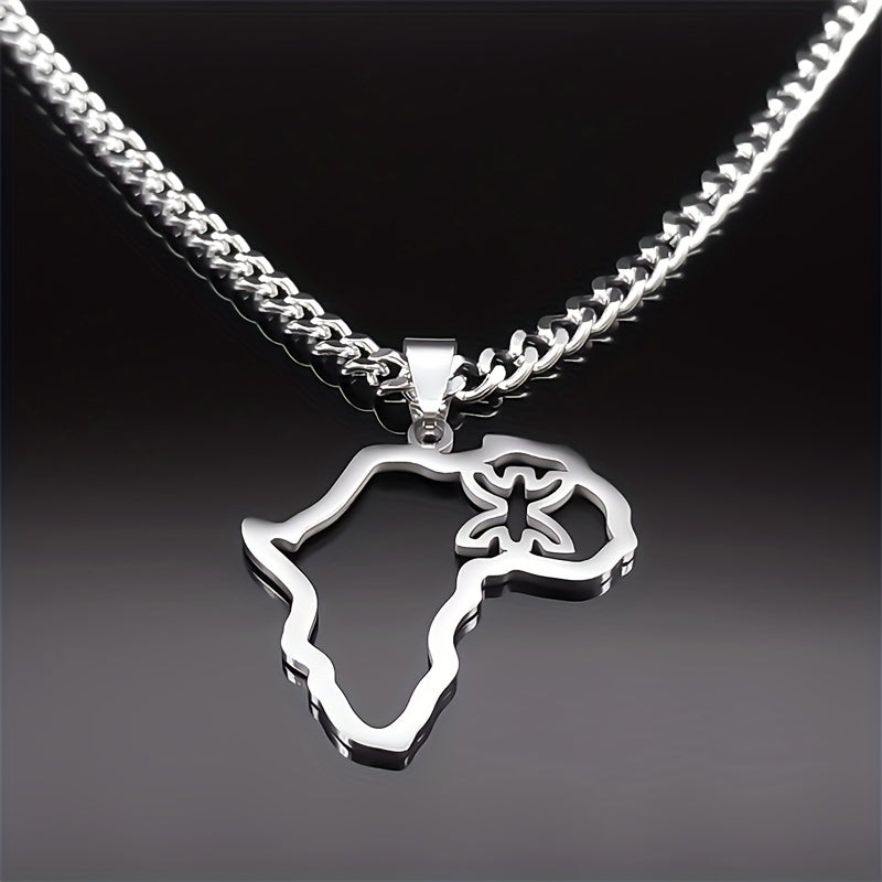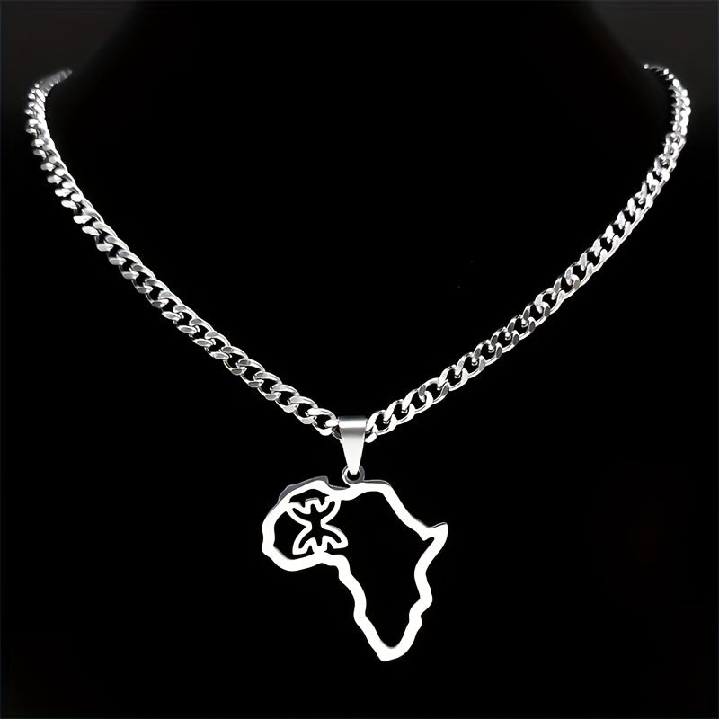 This stainless steel necklace features an African map symbol pendant. It is a sleek and stylish accessory for men.