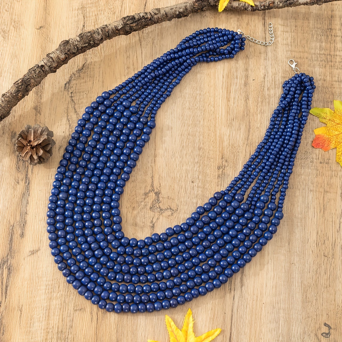 Embrace the African style with this multilayered chunky wooden beads necklace that offers a touch of retro charm. Ideal for bohemian fashion enthusiasts.