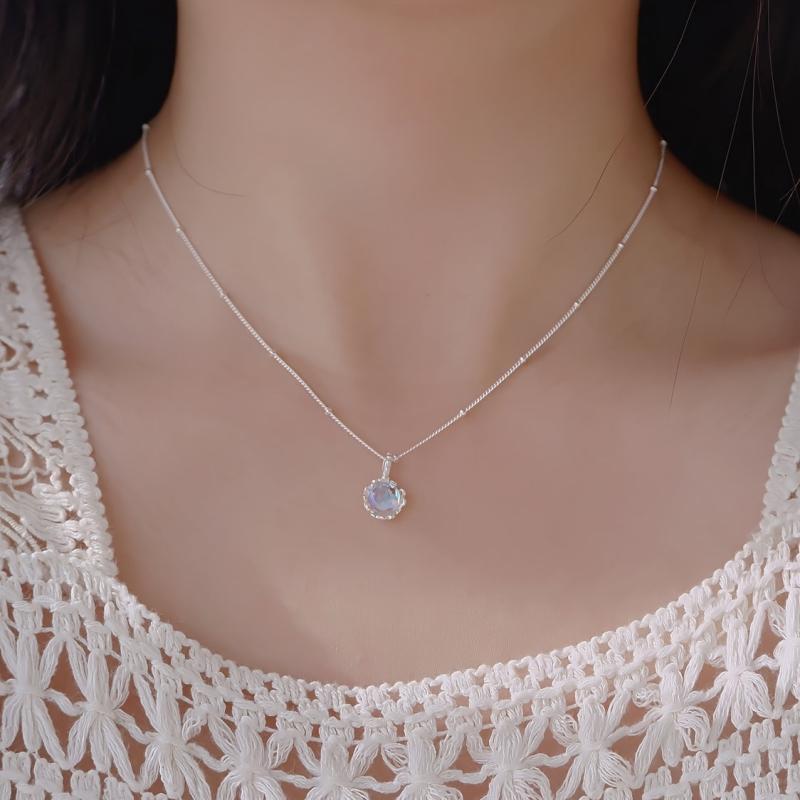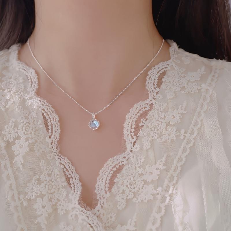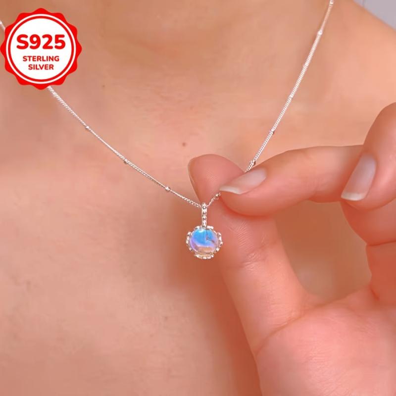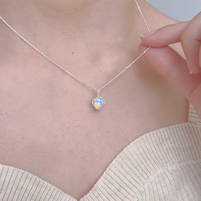 This exquisite necklace features a synthetic moonstone pendant on a stylish clavicle chain, perfect for Valentine's Day, parties, and gifting all year round.