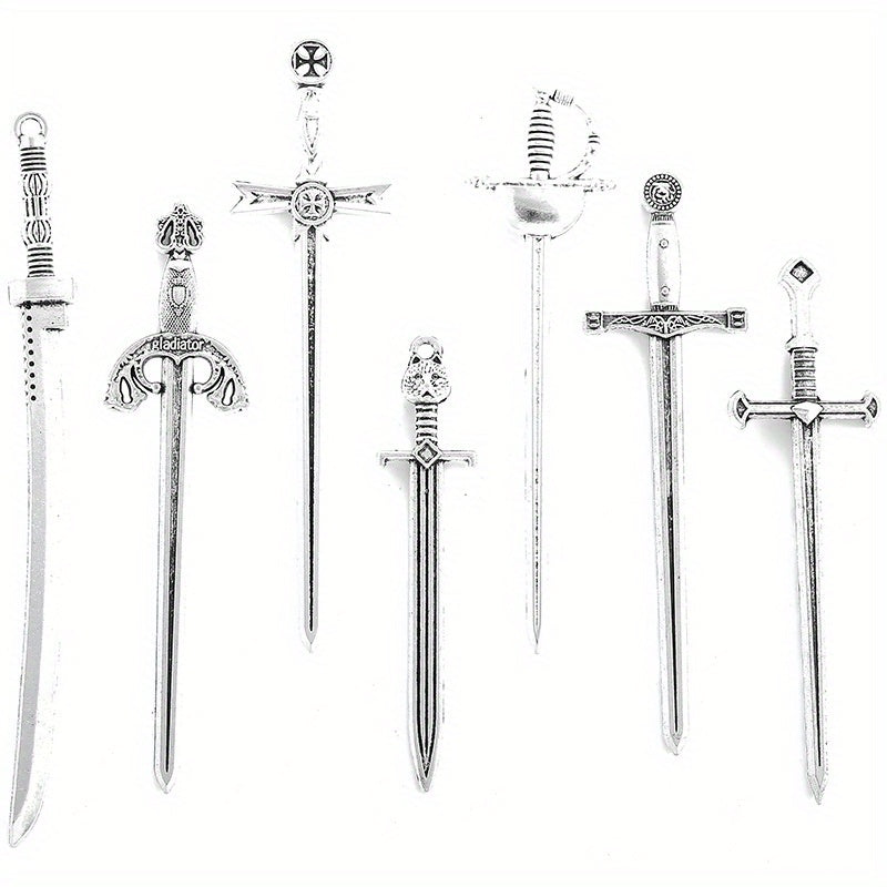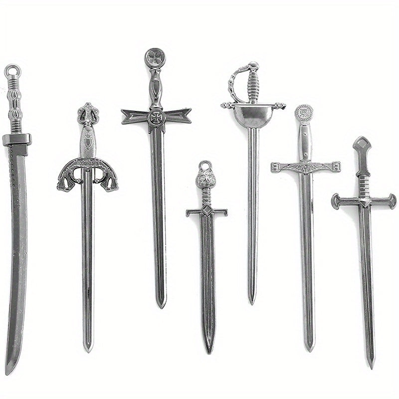 Elevate your jewelry making with these unique alloy antique knight sword charms. Perfect for creating DIY weapons-inspired pendants.