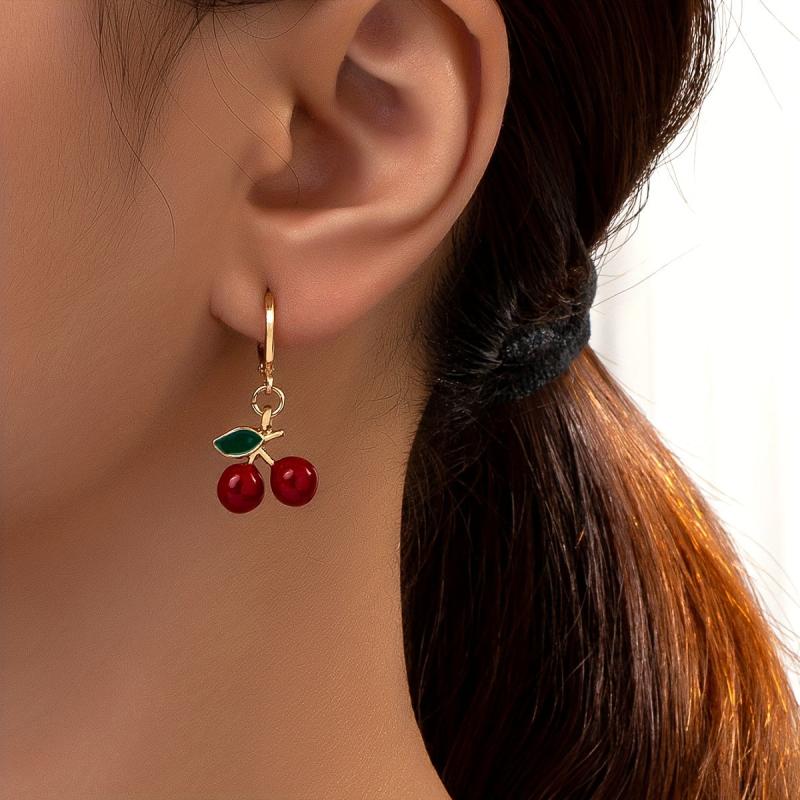 These charming Alloy Cherry Earrings are perfect for both everyday wear and special occasions. Add a touch of whimsical elegance to your outfit with these adorable earrings.