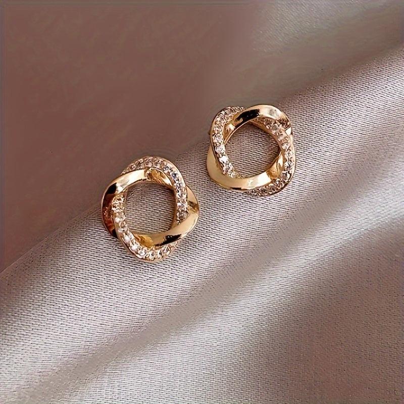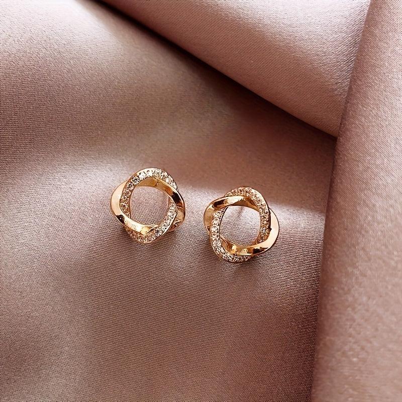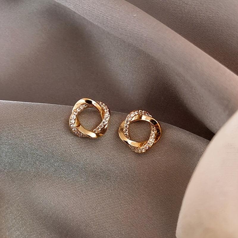 Chic and versatile stud earrings featuring rhinestone detailing on alloy circles with stainless steel posts. Perfect for daily wear throughout all seasons.