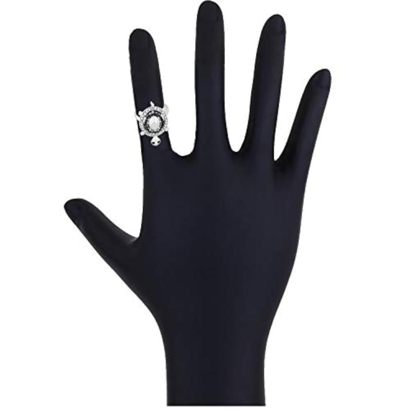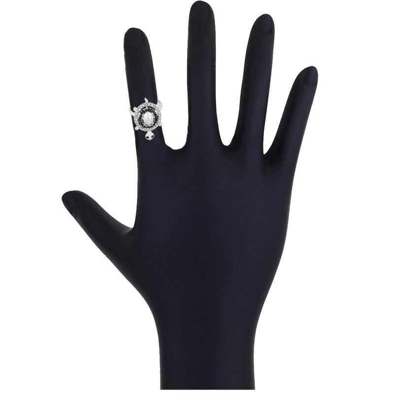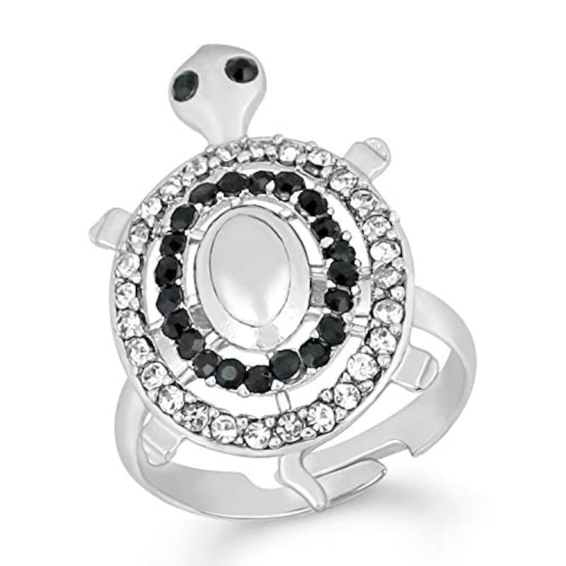 This contemporary alloy ring features a tortoise design accented with sparkling crystals.