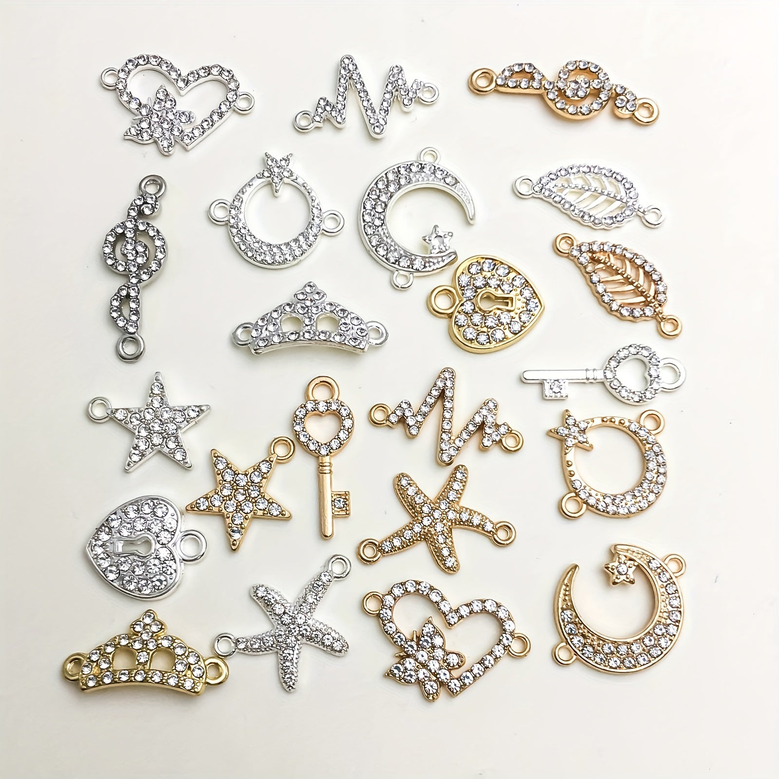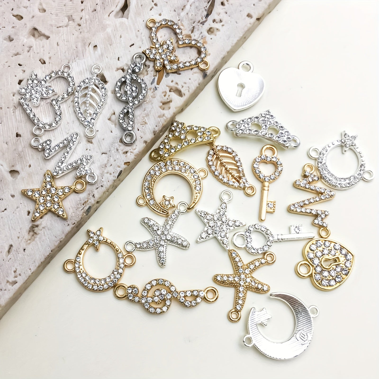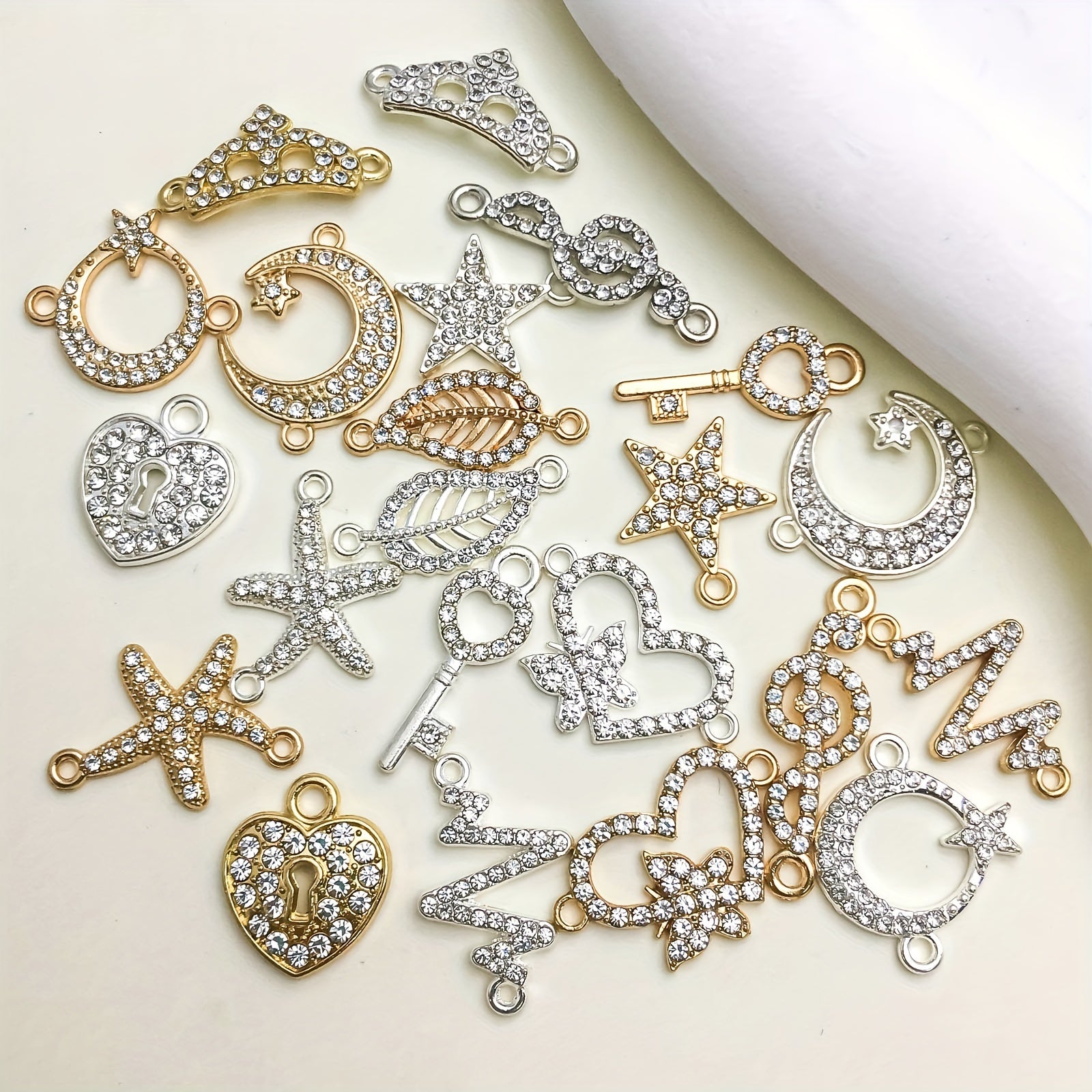 Create stunning jewelry with this set of alloy pendants featuring artificial diamonds in leaves, stars, and moon shapes. Perfect for crafting unique necklaces, bracelets, and earrings.