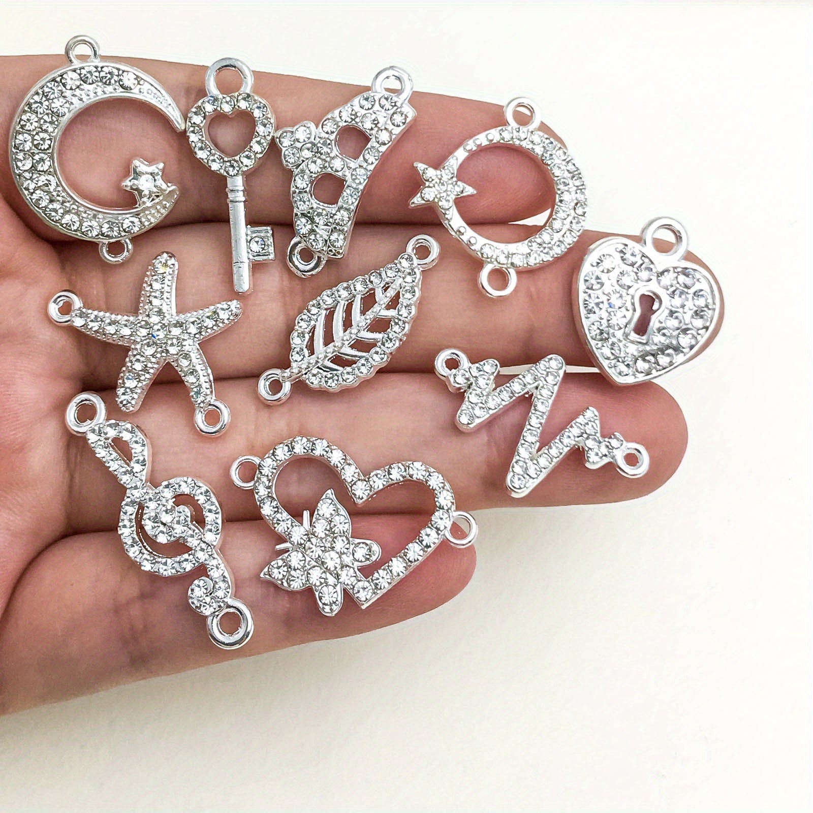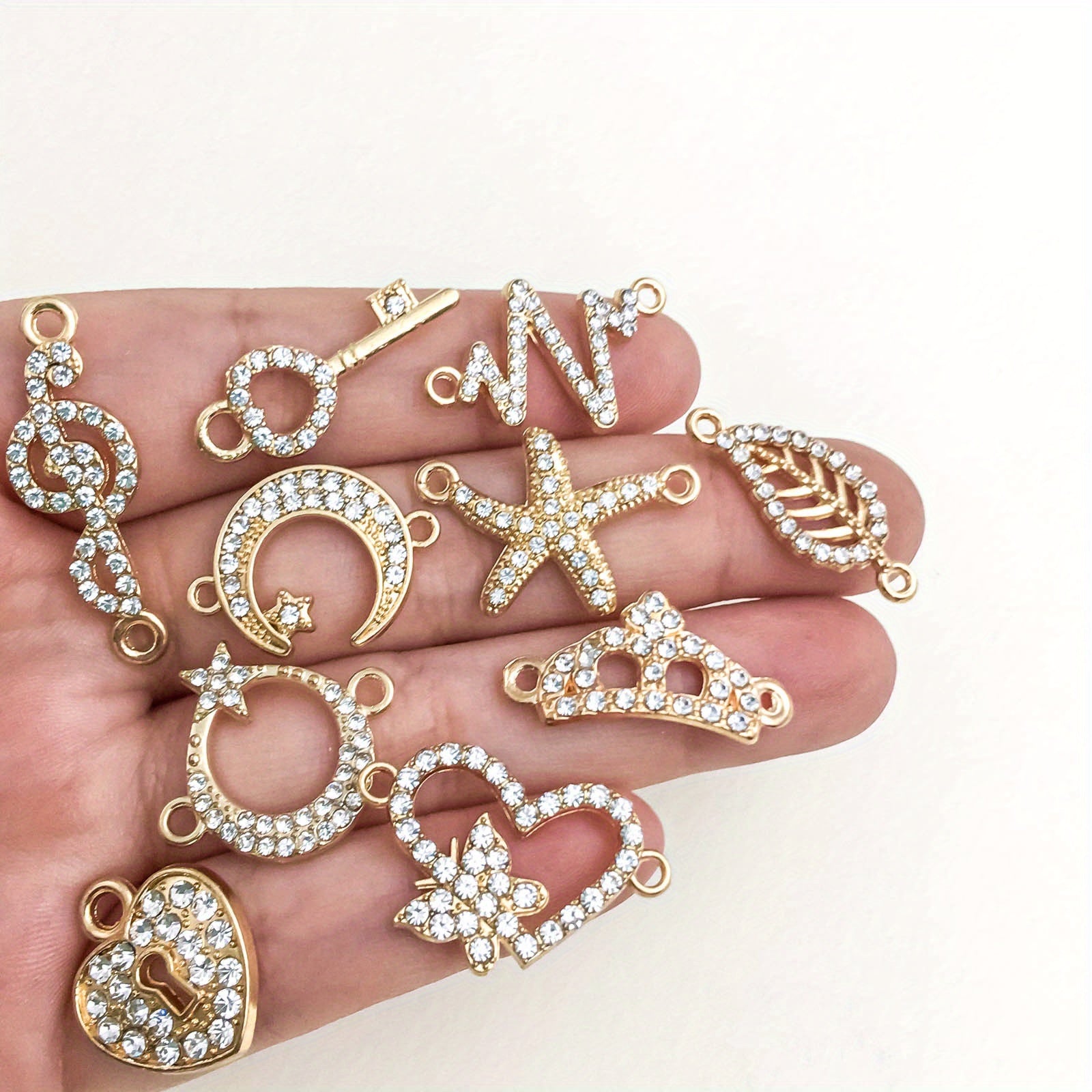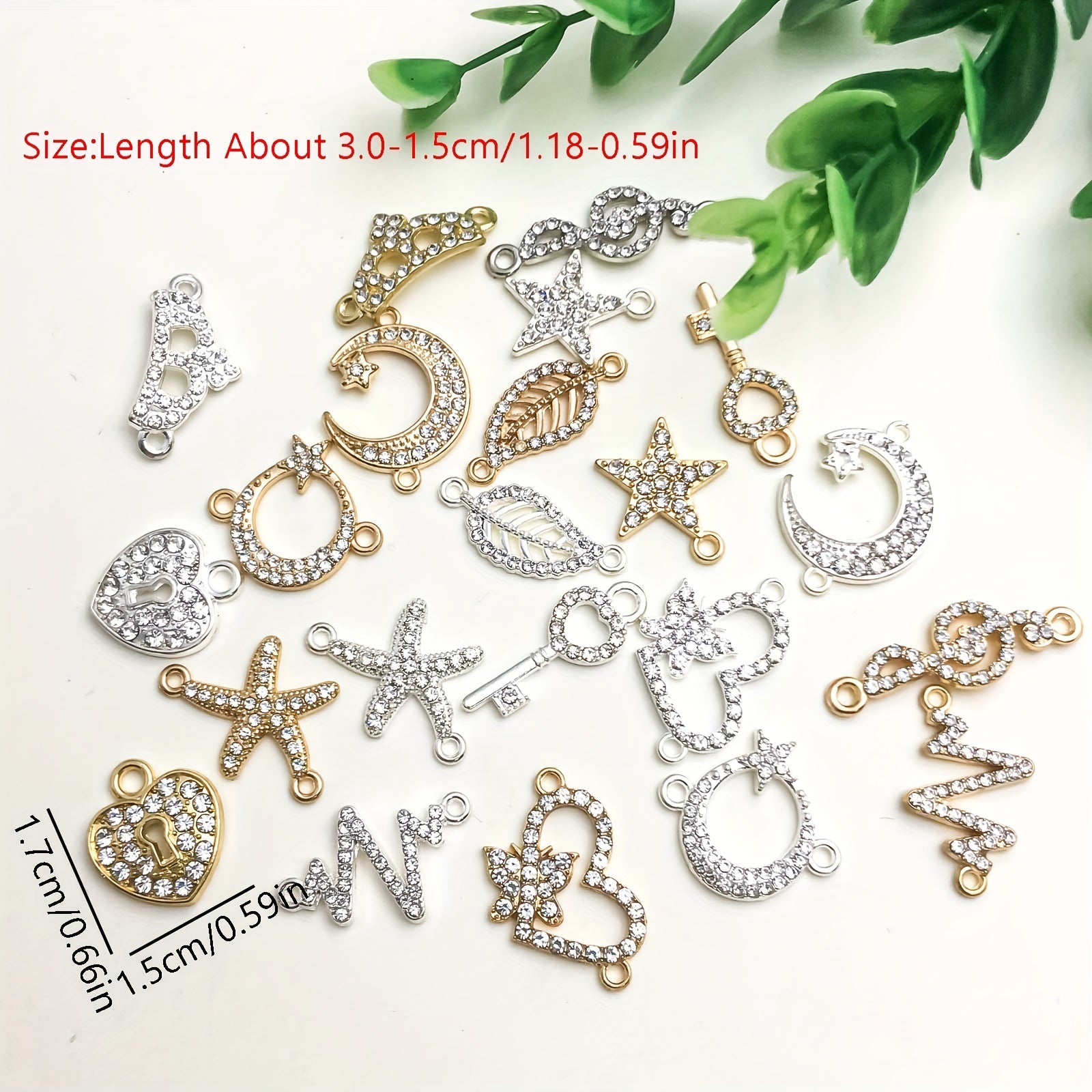 Create stunning jewelry with this set of alloy pendants featuring artificial diamonds in leaves, stars, and moon shapes. Perfect for crafting unique necklaces, bracelets, and earrings.