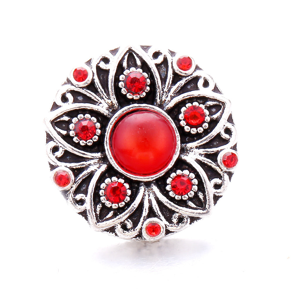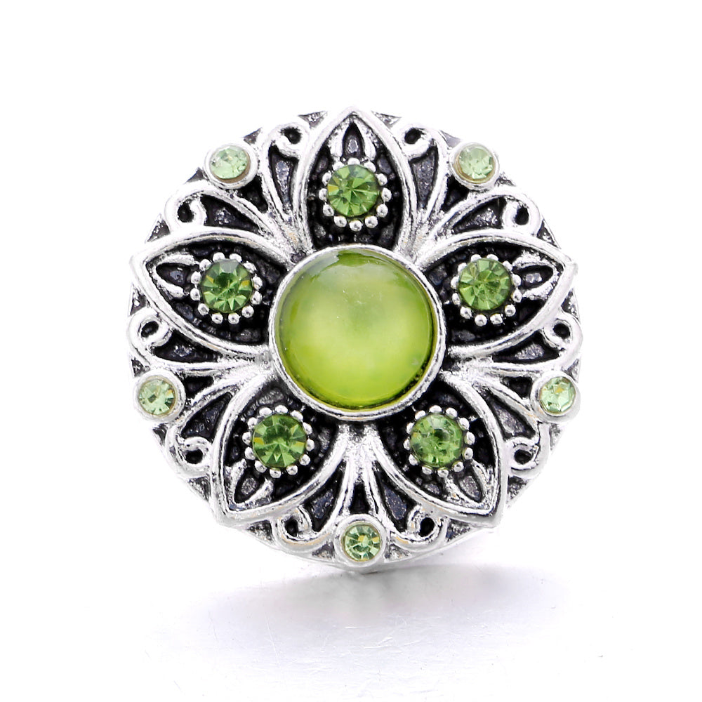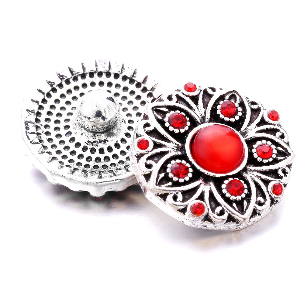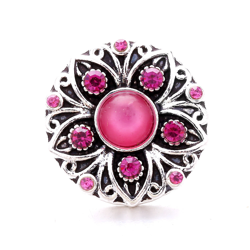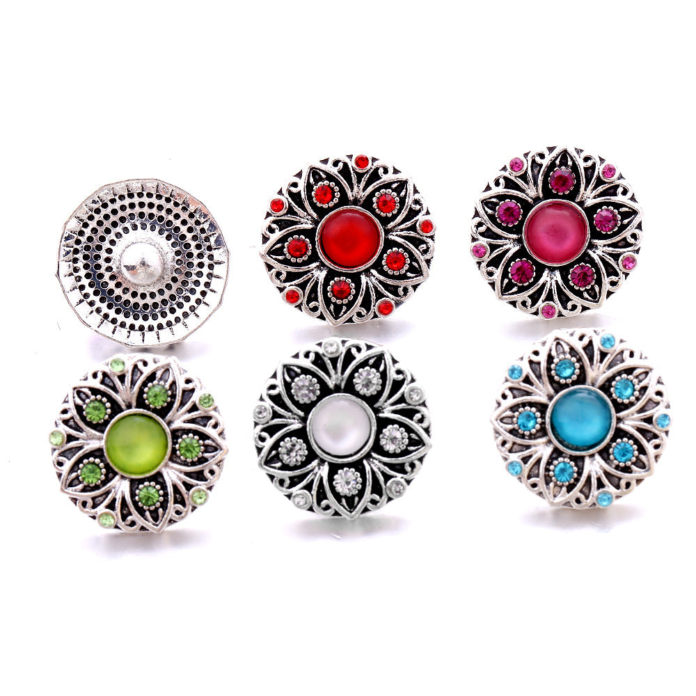 This flower-shaped snap button is crafted from alloy and adorned with colorful rhinestones, perfect for creating your own bracelet or necklace. It is a semi-finished jewelry accessory.
