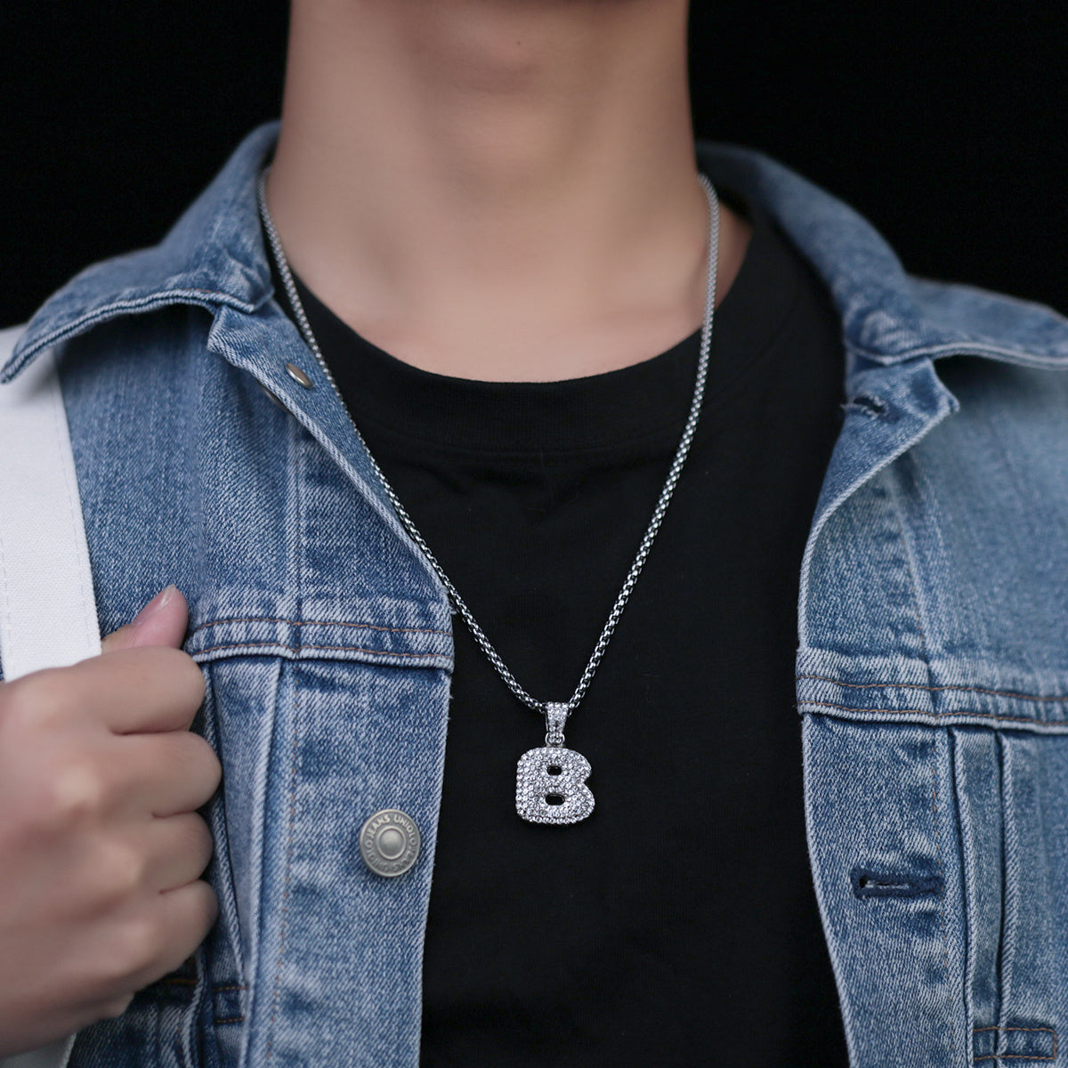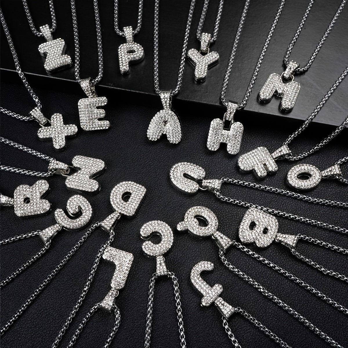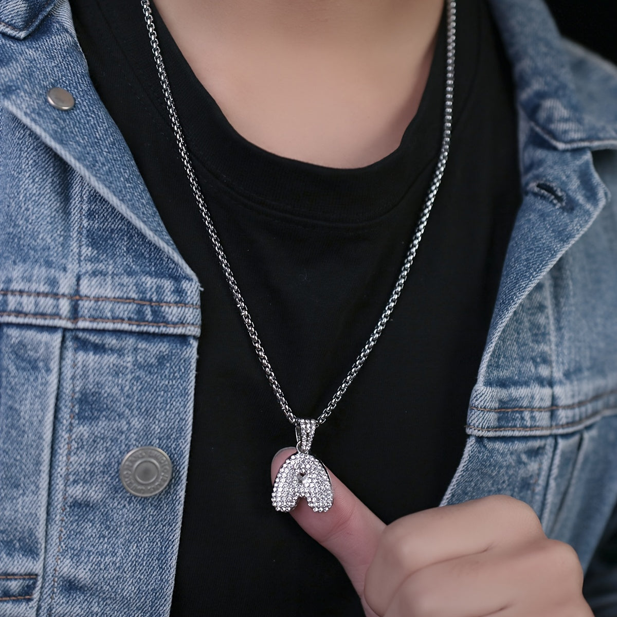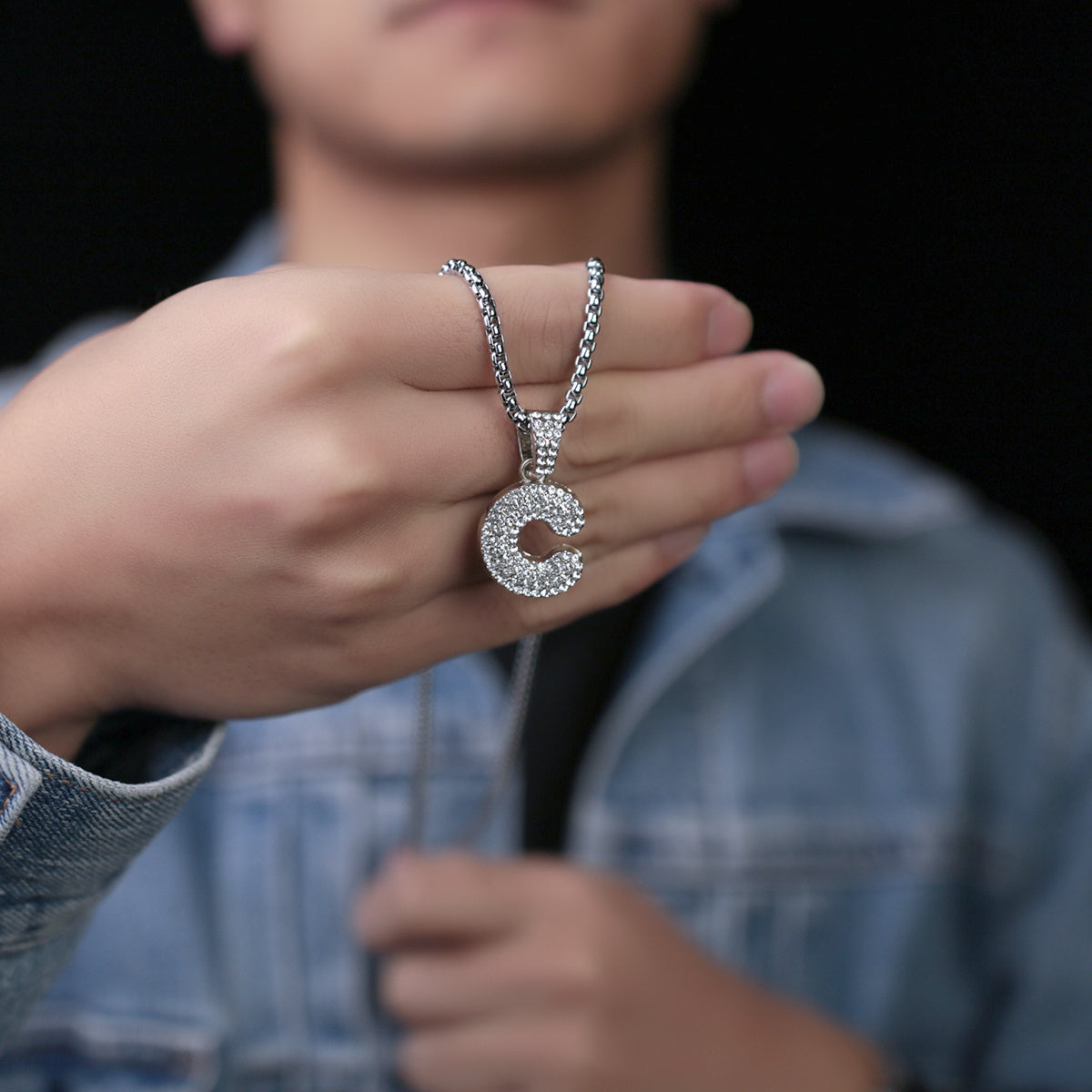 Add a touch of style with this Cuban chain necklace featuring a dazzling rhinestone inlaid letter pendant.