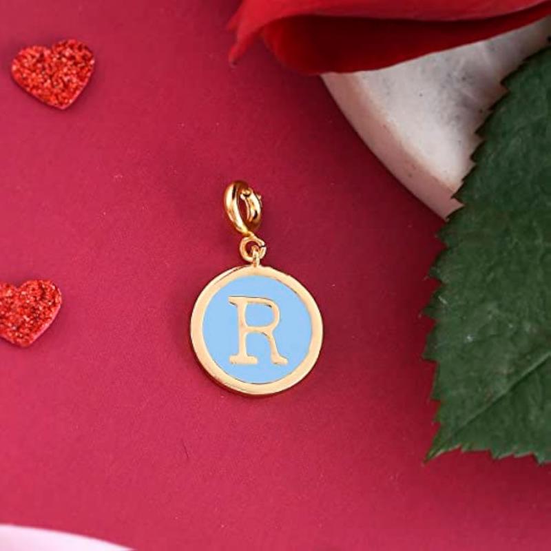 Add a personalized touch to your collection with this charming enamel charm featuring the letter 'R'.