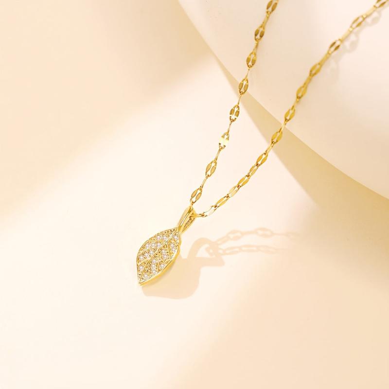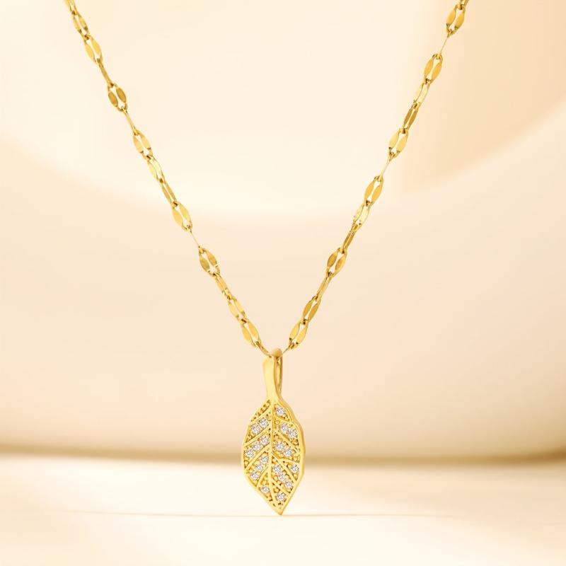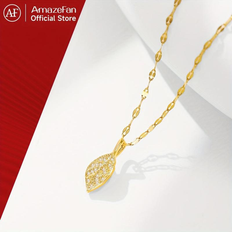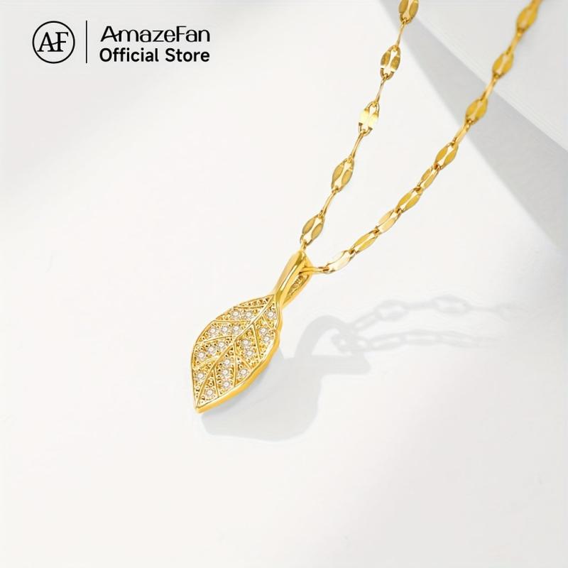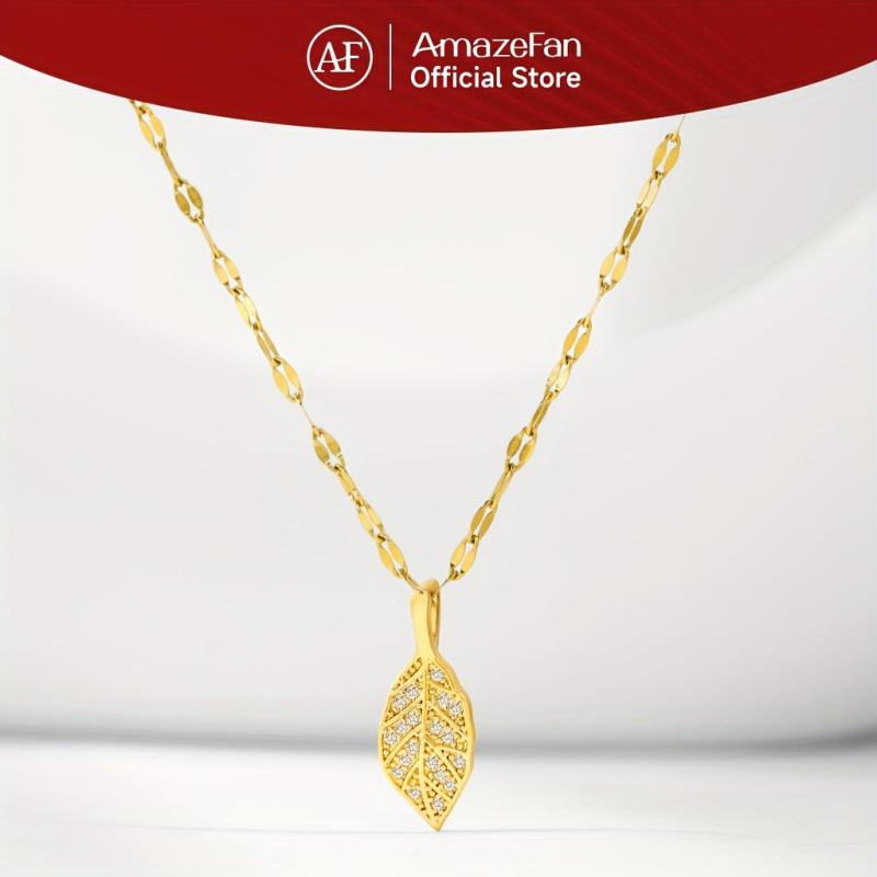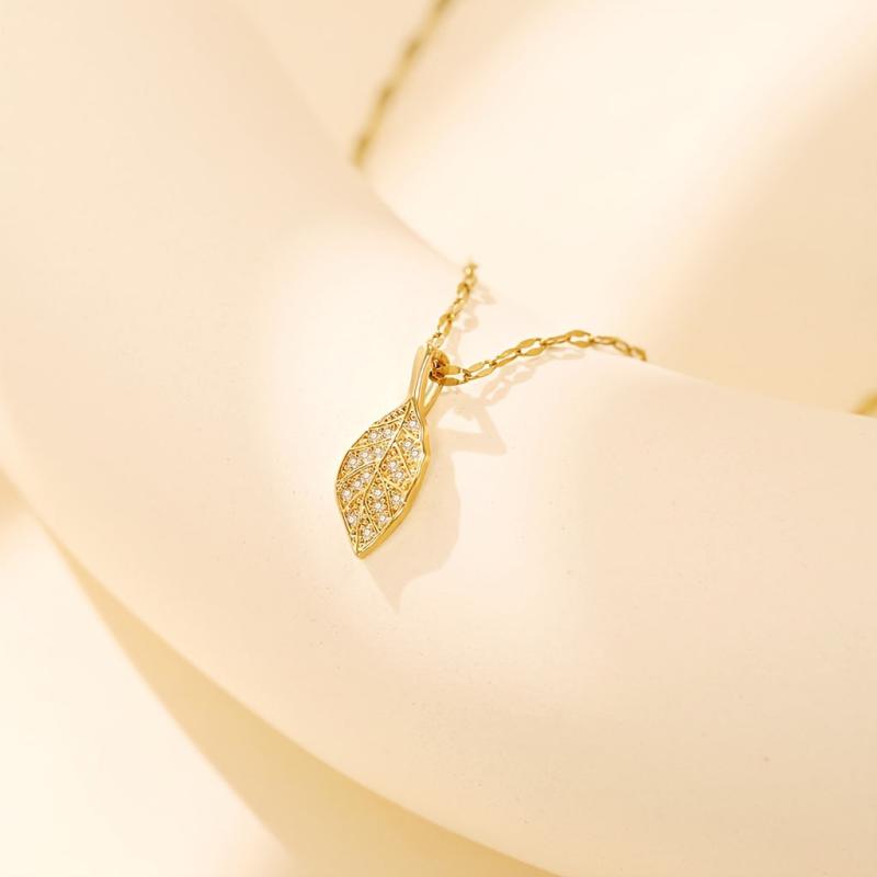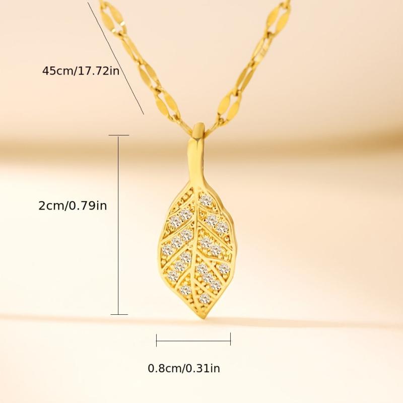 Elevate your casual attire with this adjustable leaf pendant necklace featuring a golden toned copper chain with sparkling accents. Perfect for everyday wear and gift giving.