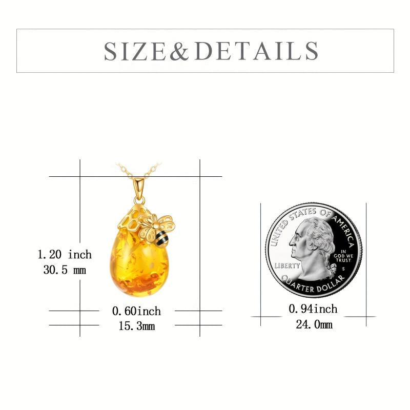 This beautiful bee necklace with amber pendant is the perfect jewelry gift for mothers on Christmas, birthdays, or anniversaries.