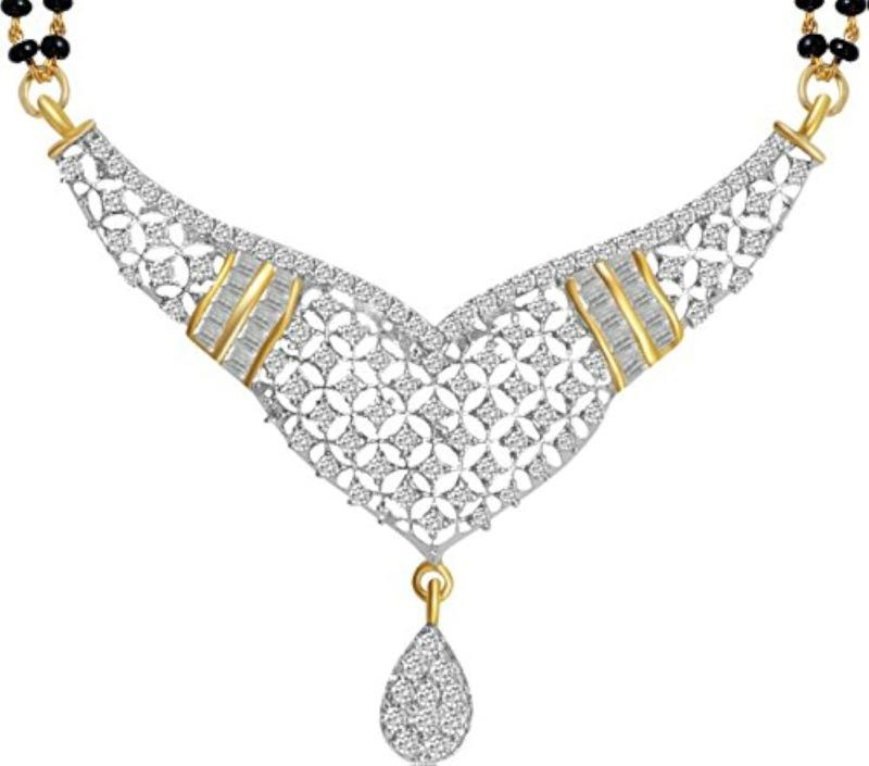 Stunning American Diamond plated mangalsutra pendant set that adds elegance to your look.