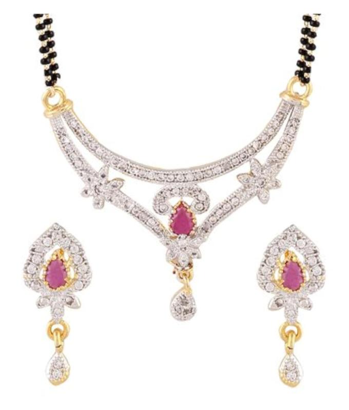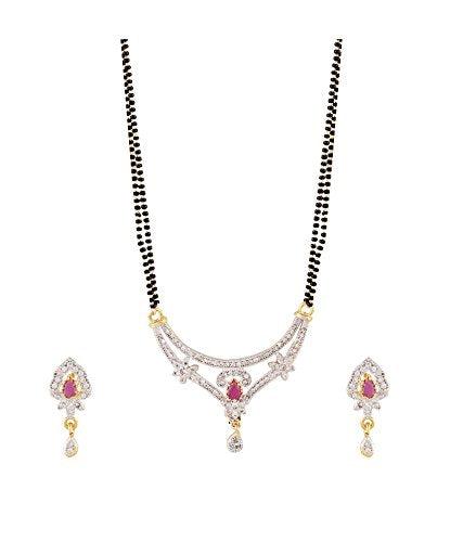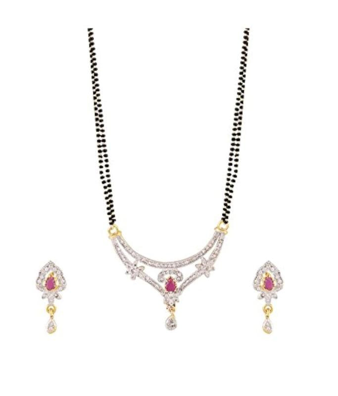 Elegant and stylish mangalsutra set featuring American diamond plating. Includes a matching chain and earrings for a complete look.