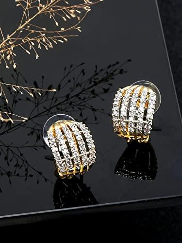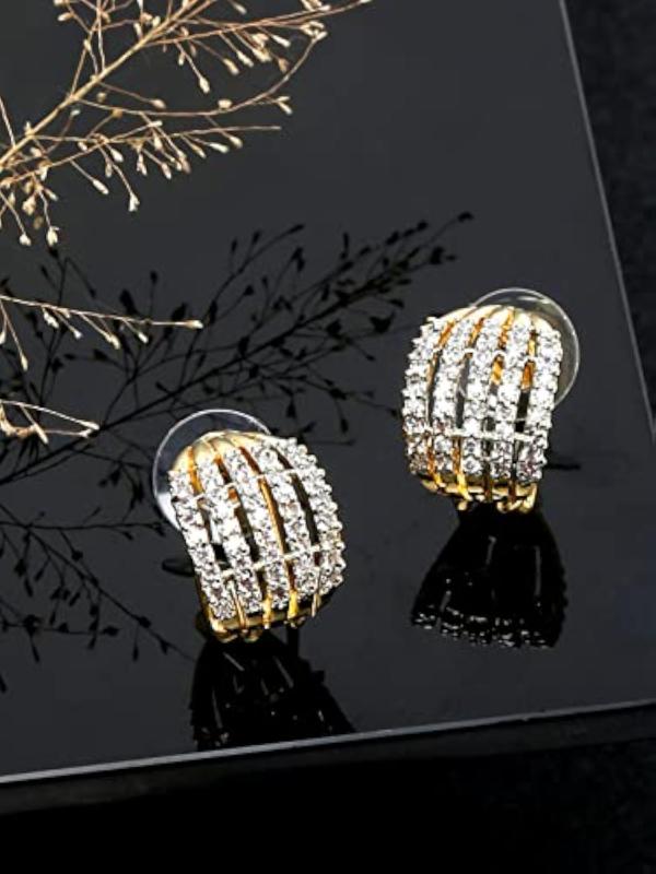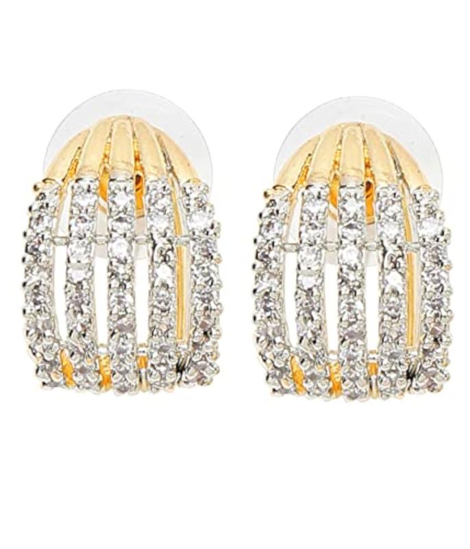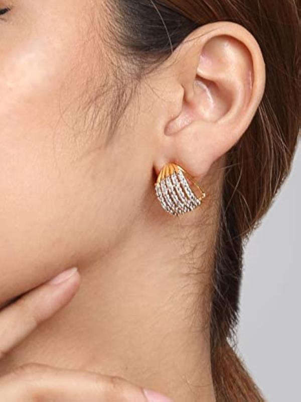 Stylish and elegant huggie earrings plated with American diamonds for a touch of glamour.
