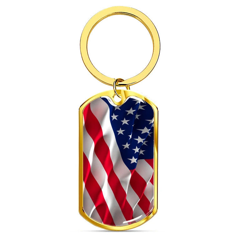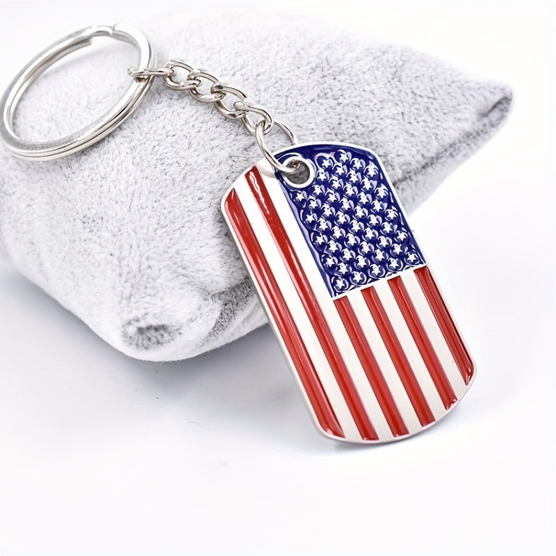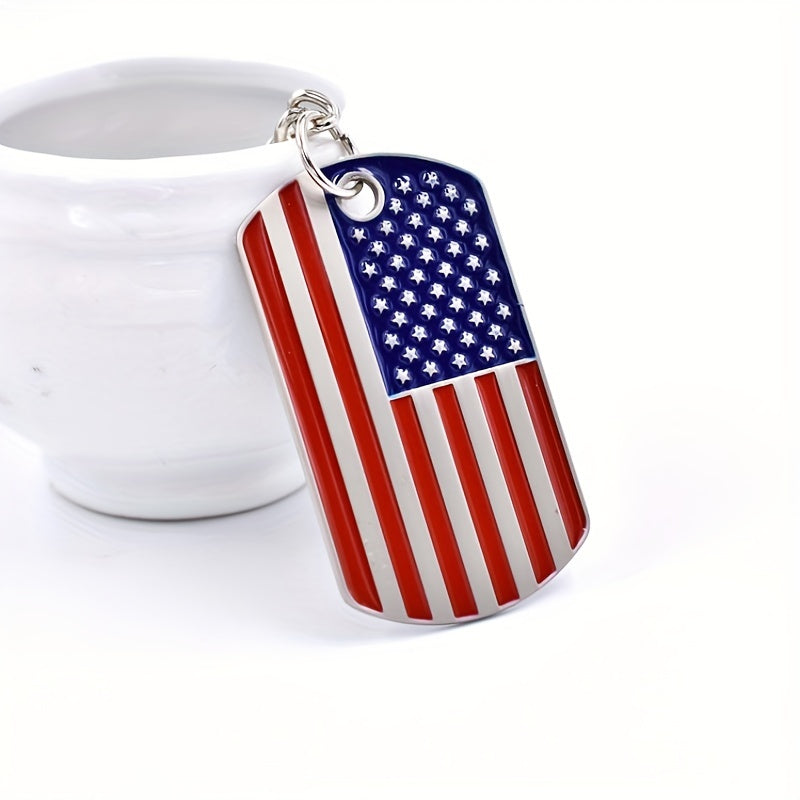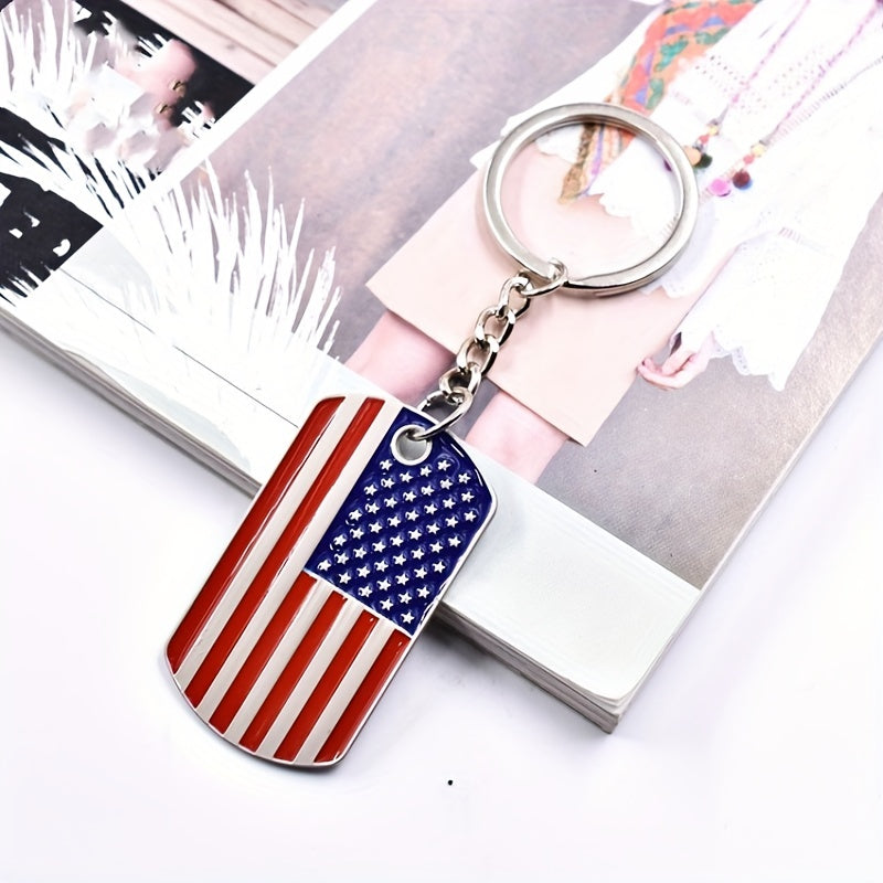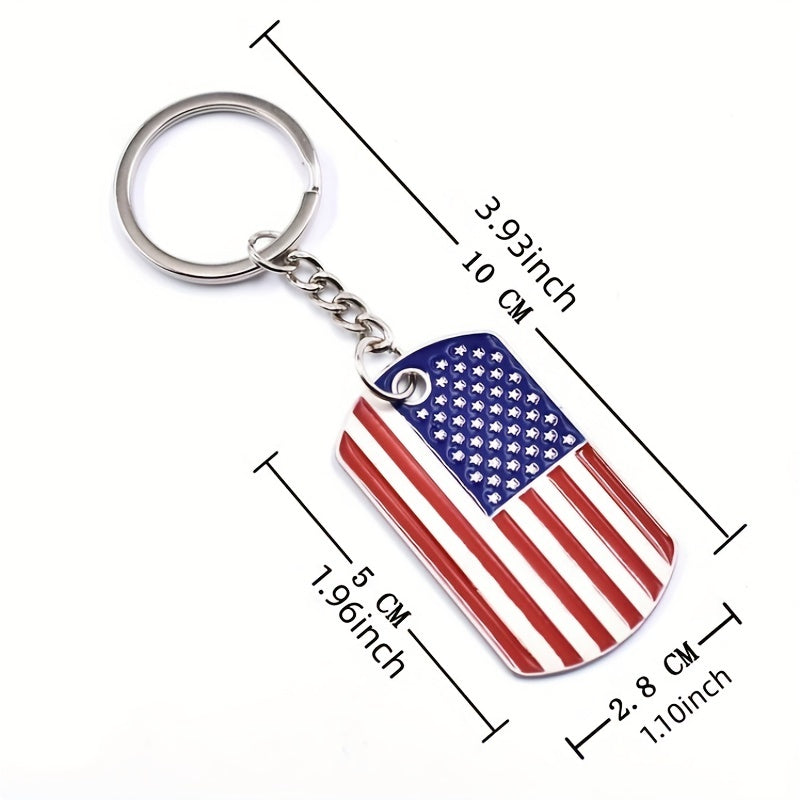 This stainless steel tag pendant keychain features a stylish American flag pattern design, making it a great accessory for both women and men.