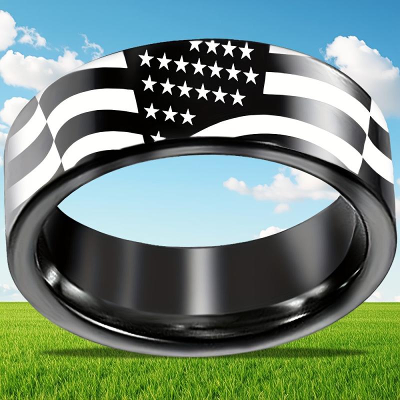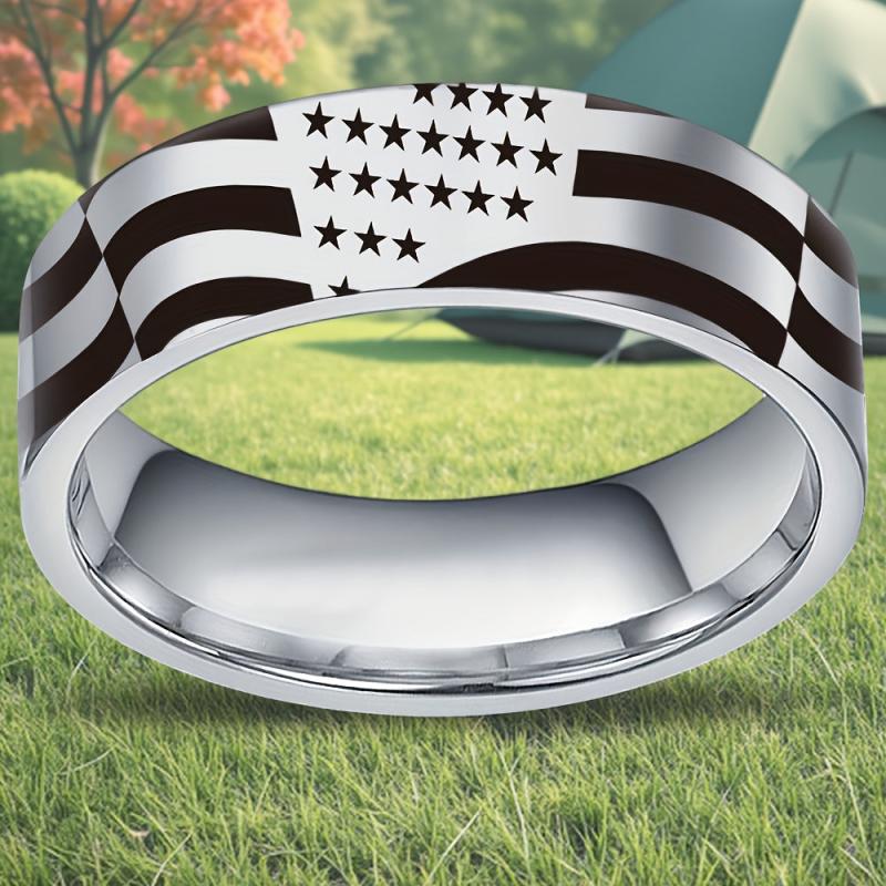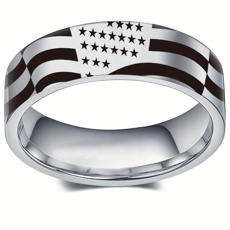 Show your patriotism with this American flag wedding band ring. Made of stainless steel, this 8mm ring is ideal for daily wear and special occasions. Suitable for men and women.
