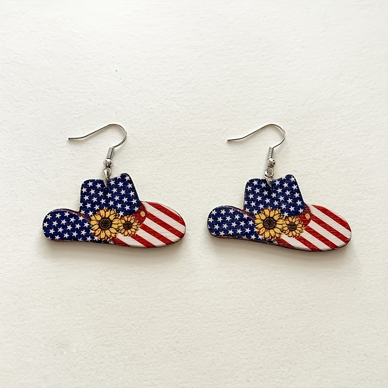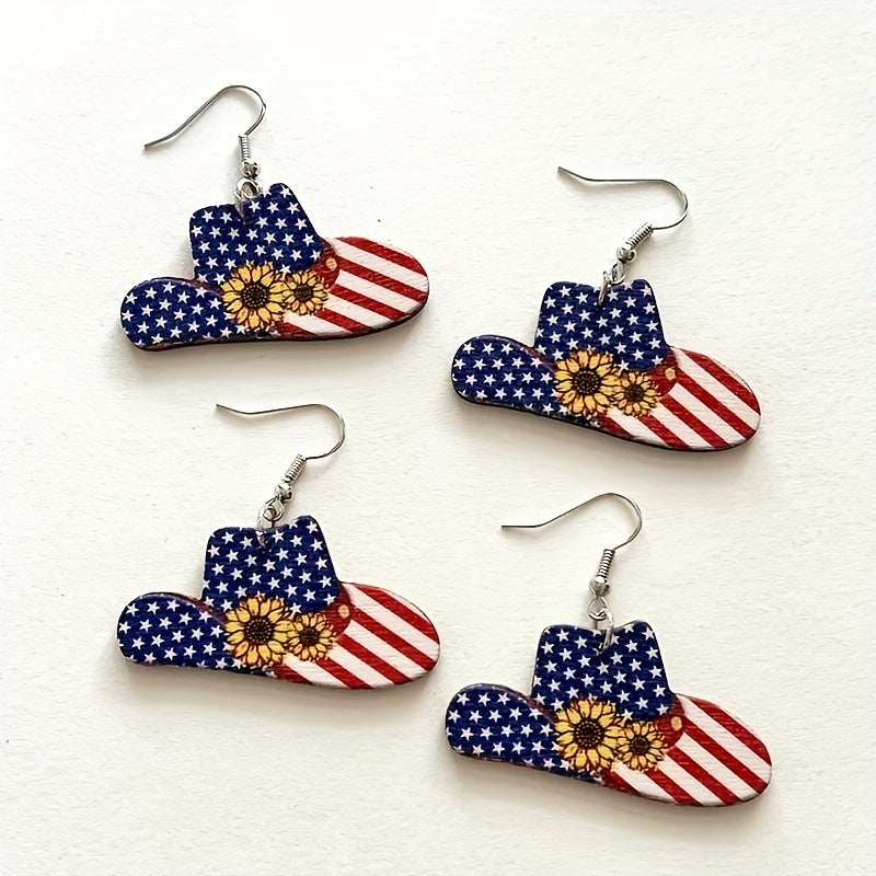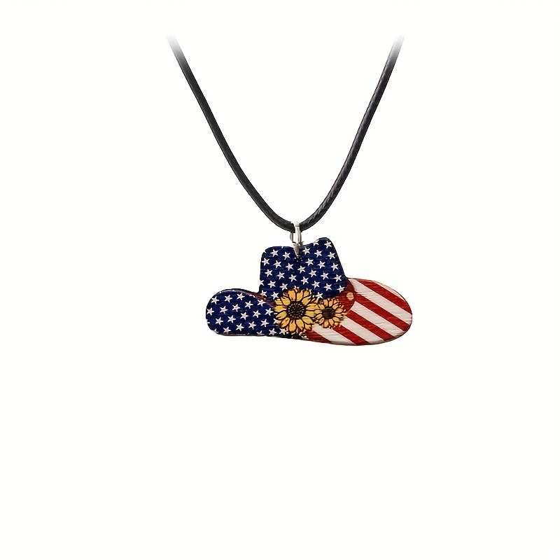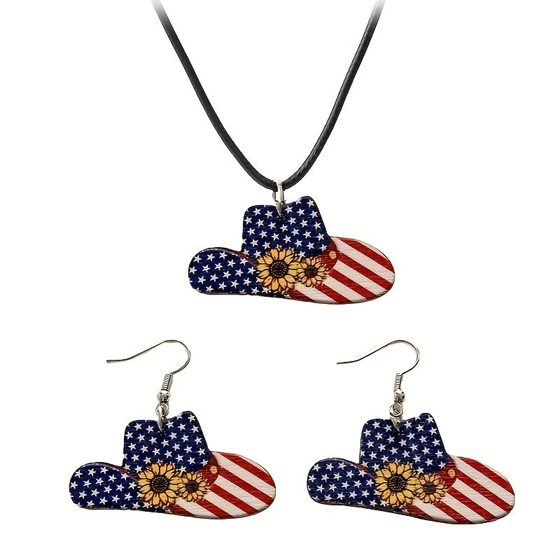 Celebrate American independence with this stylish jewelry set. Perfect for anniversary gift or western cowboy-themed events. Retro sunflower punk design with flag of the United States.