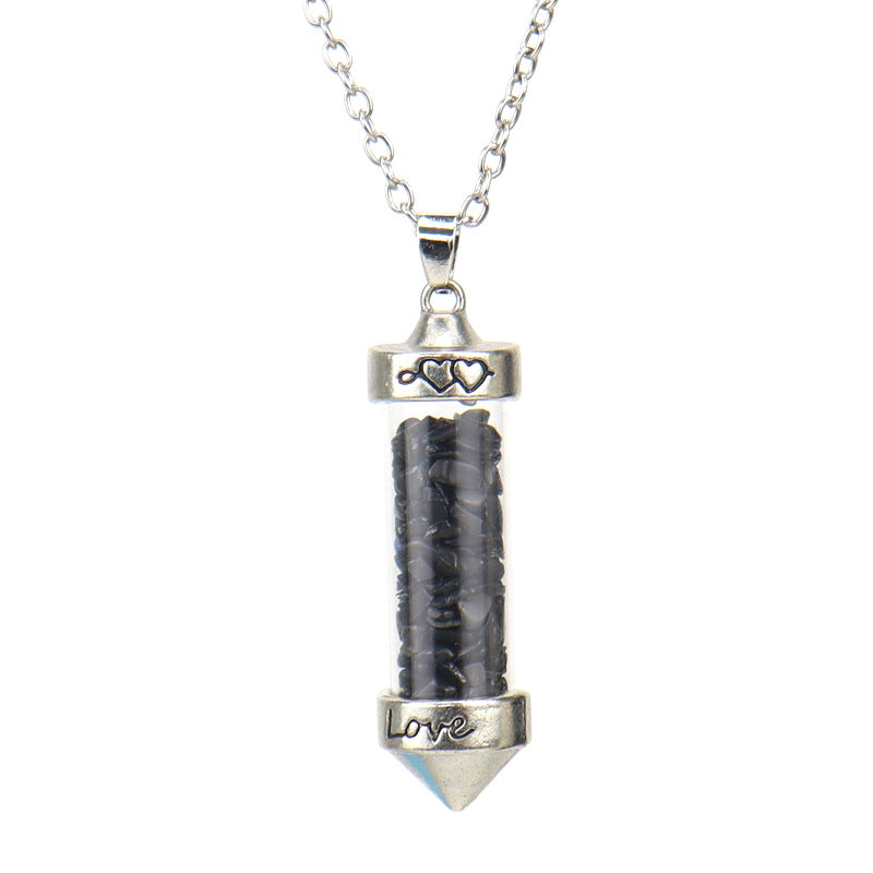 This natural stone crystal cone glass pendant features an amethyst love wishing bottle design that exudes charm and elegance. It comes with a sturdy stainless steel chain for durability and style.