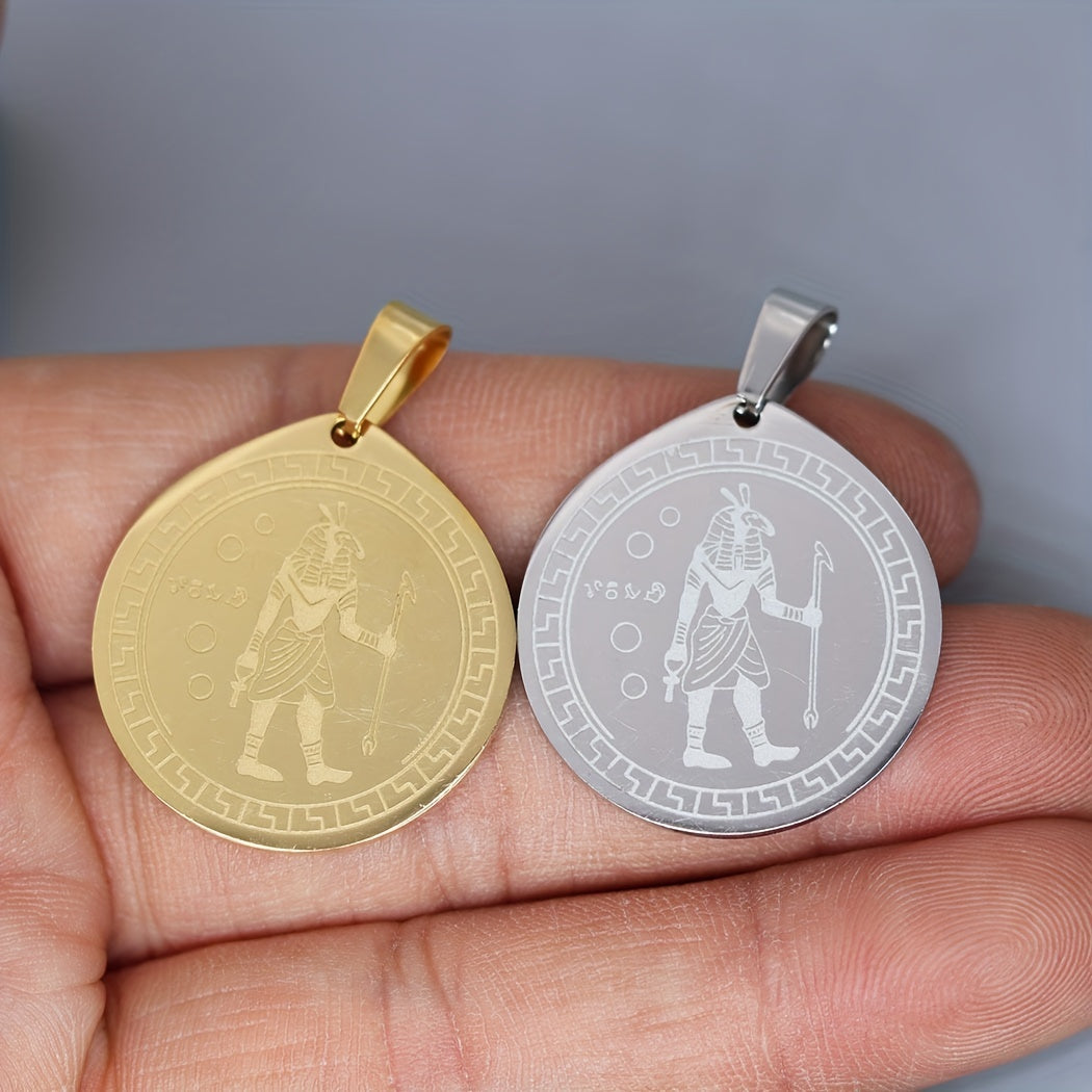 Enhance your jewelry crafts with this semi-finished stainless steel charm featuring an ancient Egyptian design. Perfect for necklaces and bracelets.