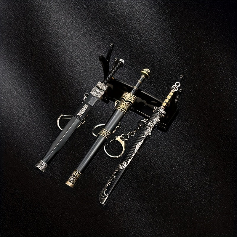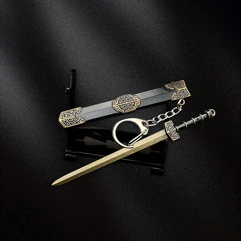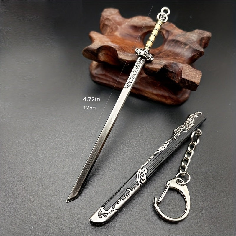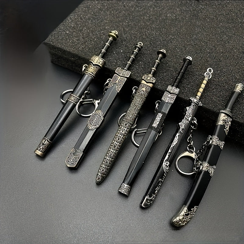 This ancient mini sword model is a versatile accessory that can be used as a necklace or keychain pendant. It comes with a sheath for added authenticity.
