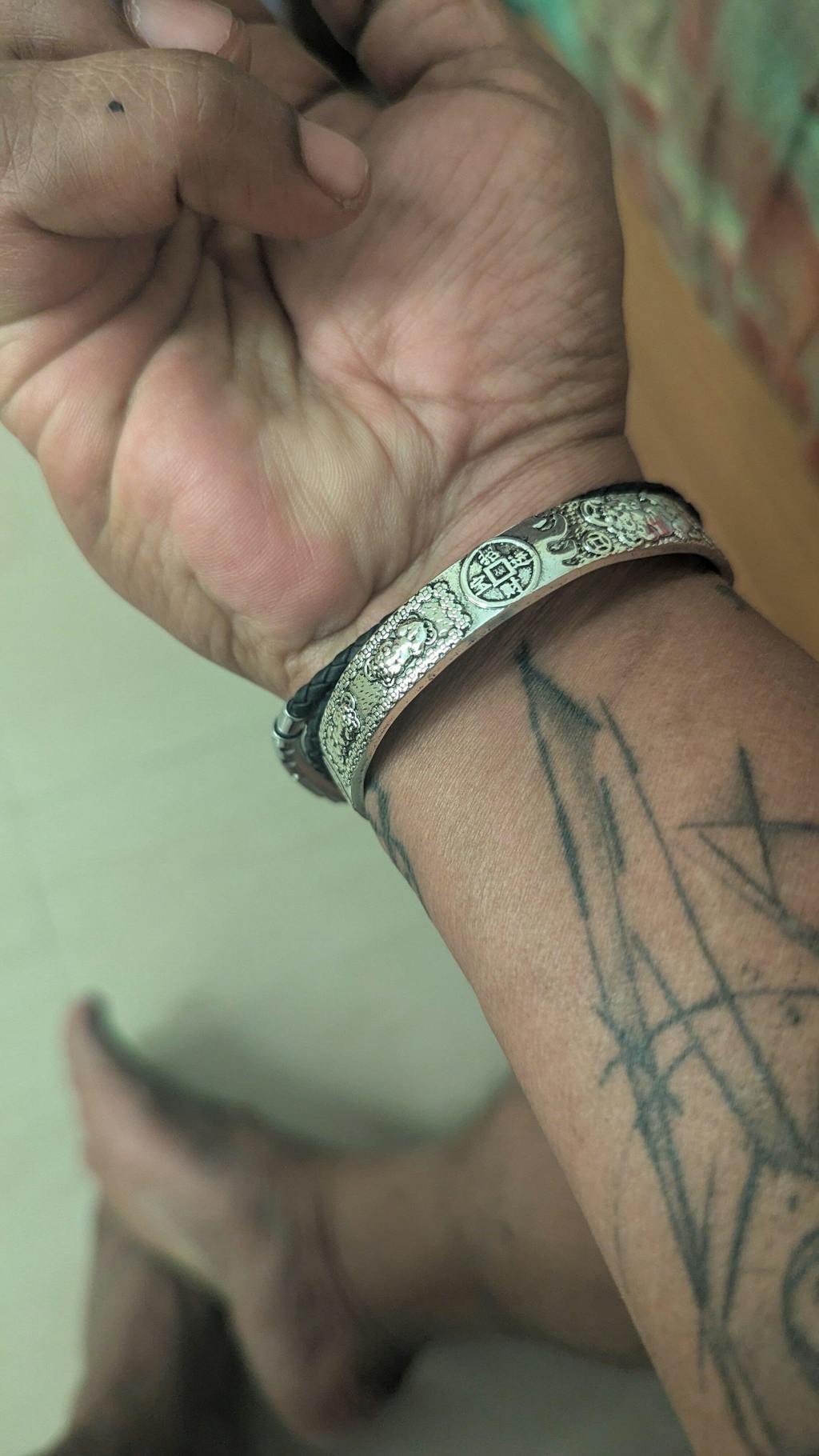 The silver and copper blend looks rich. The bangle feels solid and well-made.