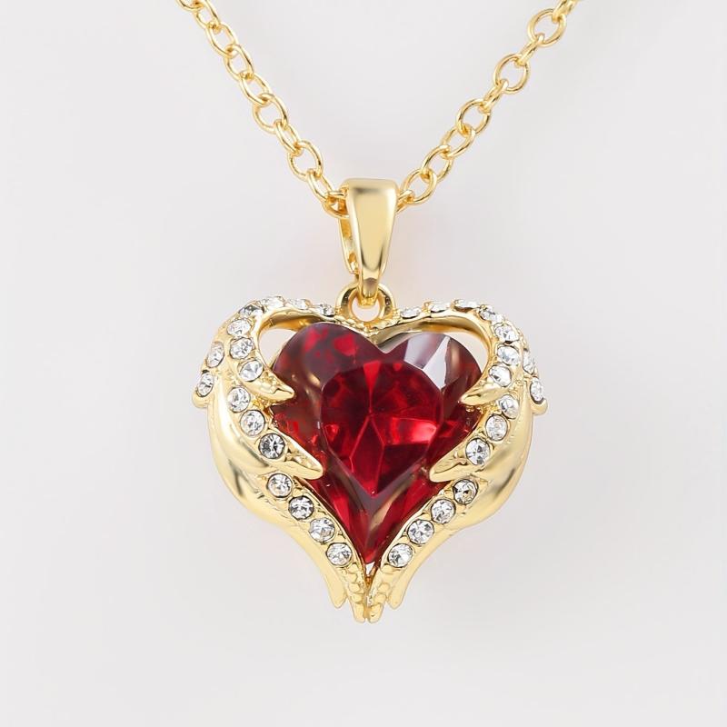 This stunning pendant features angel wings embracing a red heart zirconia, making it a perfect gift for mothers.