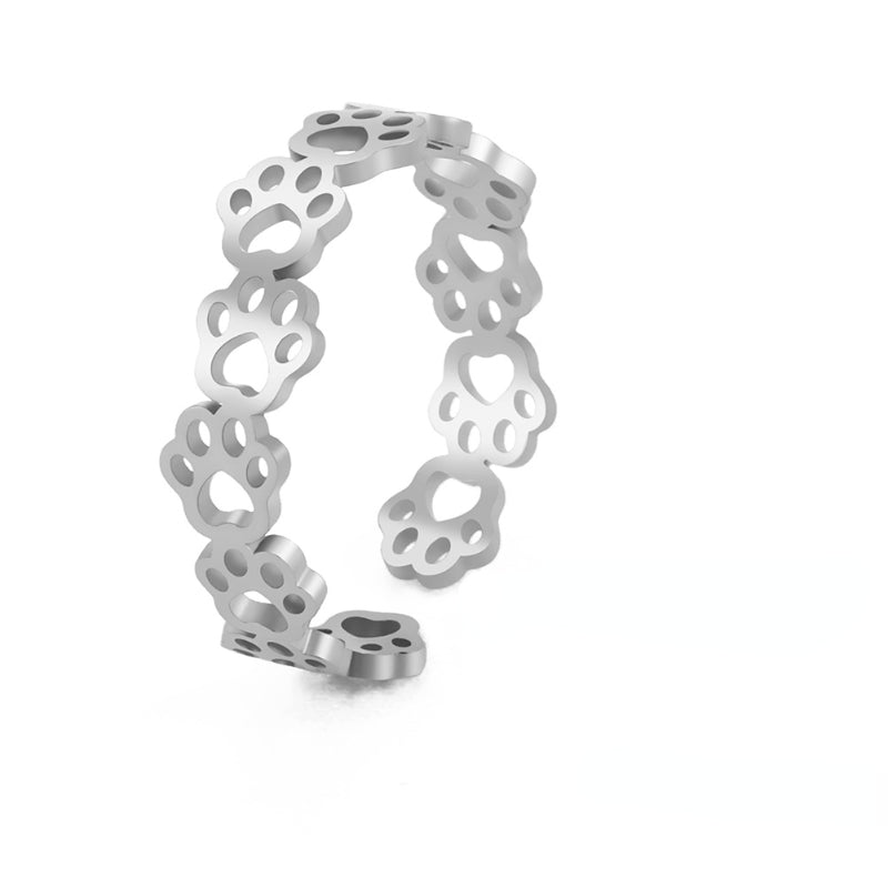 This adjustable ring is made of stainless steel and features a cute dog or cat paw design. Perfect for women or couples who love animals.