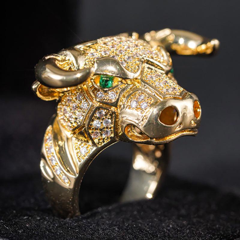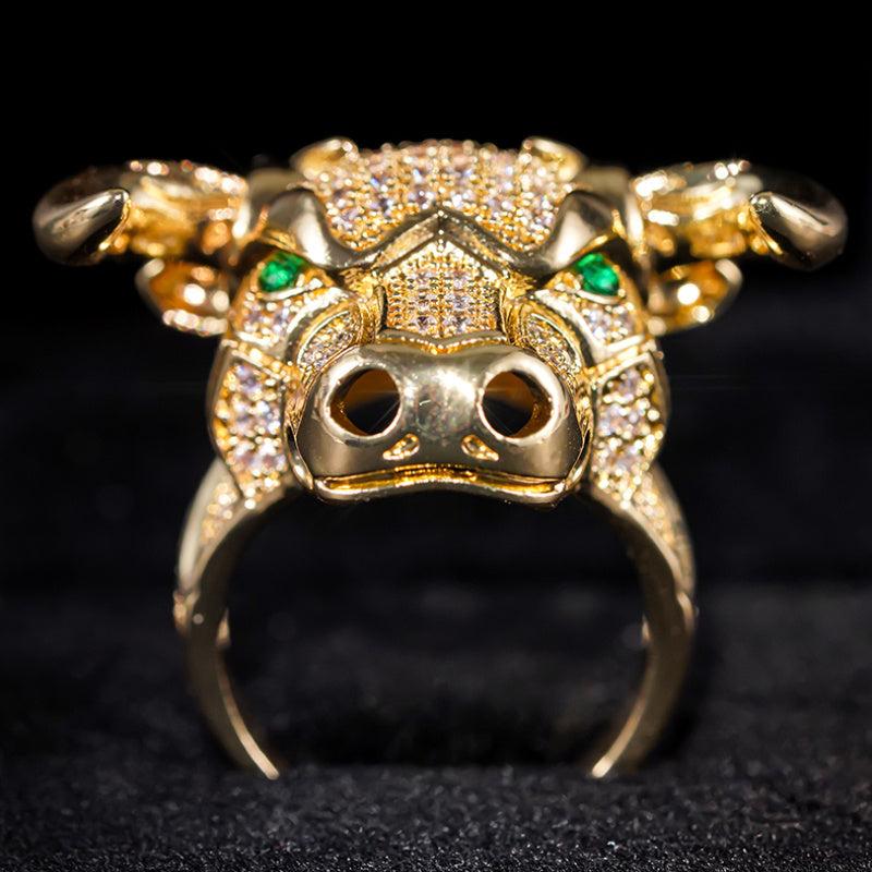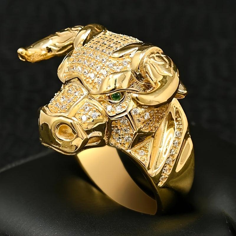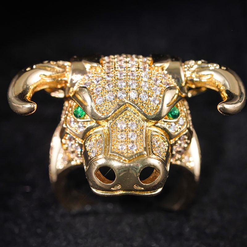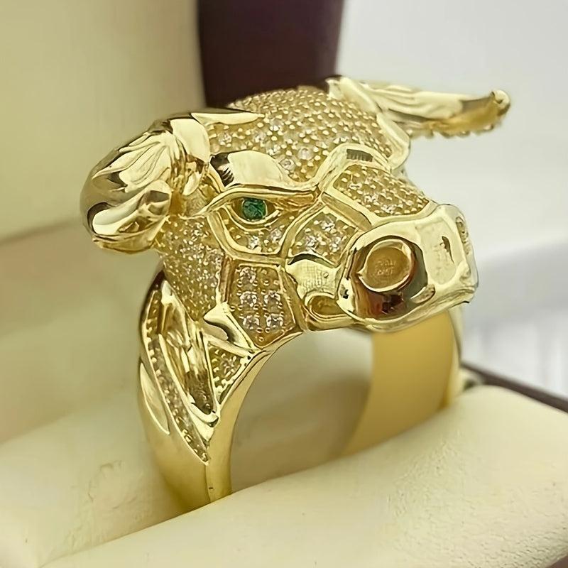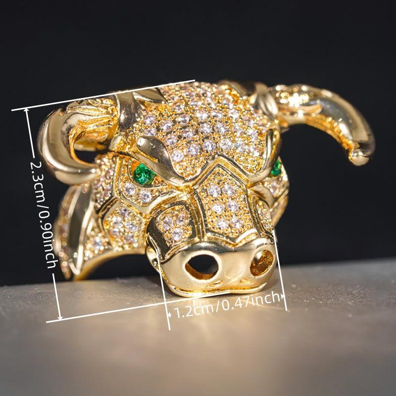 Make a bold statement with this animal bull head ring featuring synthetic zirconia stones. The golden plated design is perfect for parties, festivals, and year-round wear.