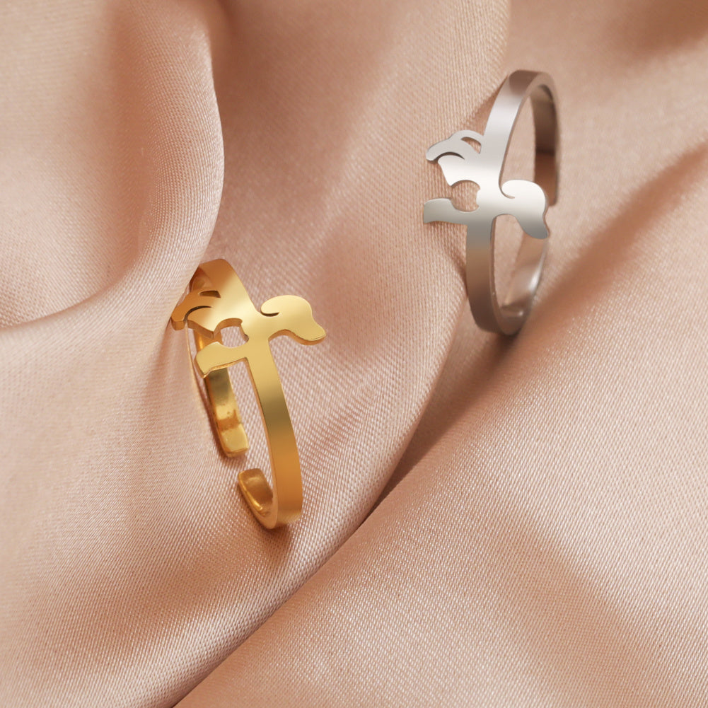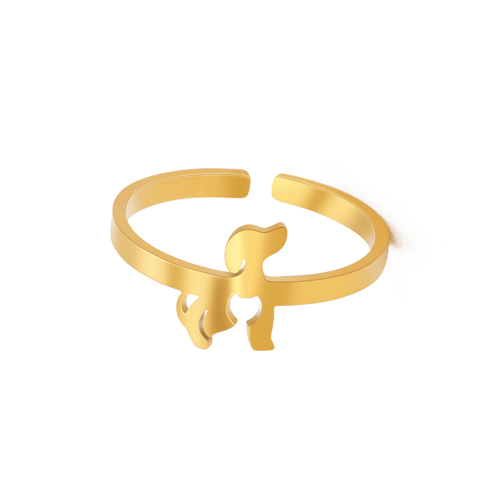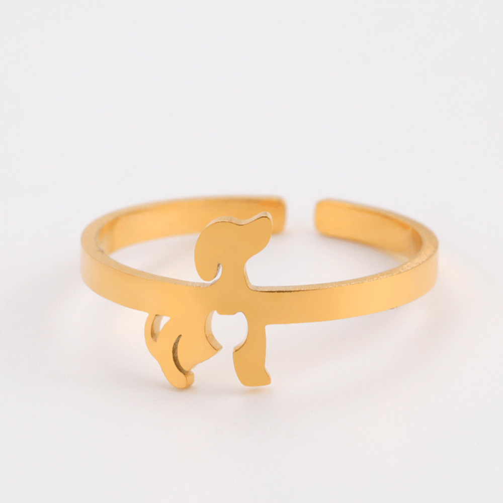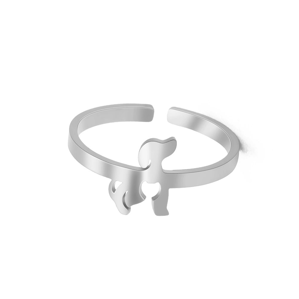 Adorn your fingers with this charming dog-inspired ring. Made of stainless steel, it features an open adjustable design that ensures a perfect fit. A great accessory for parties or as a birthday gift.