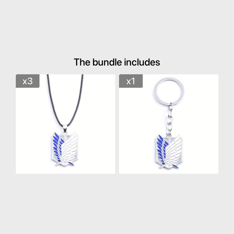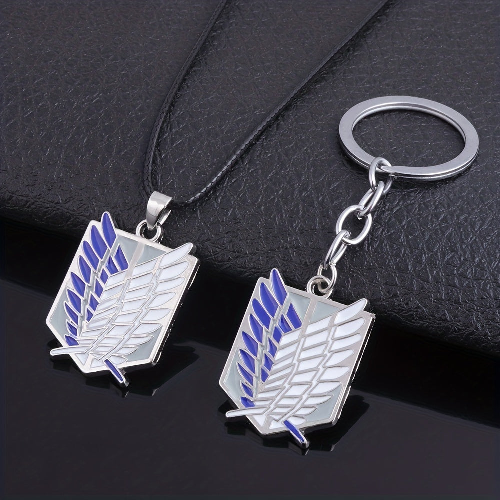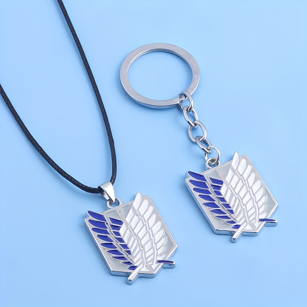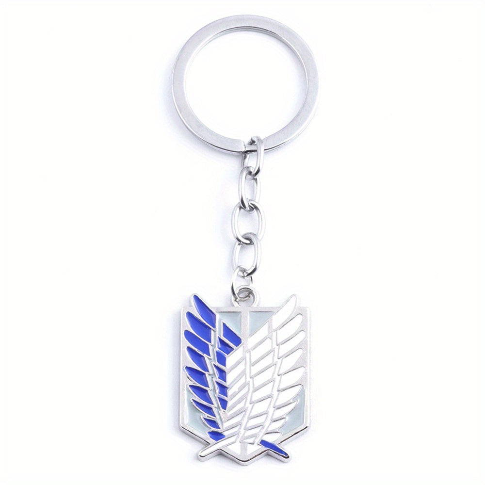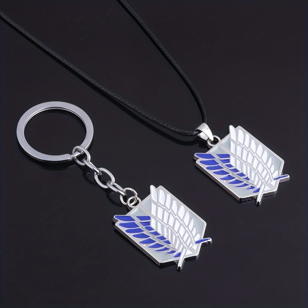 This metal necklace keychain features a classic anime cartoon wings pattern design, suitable for both men and women.