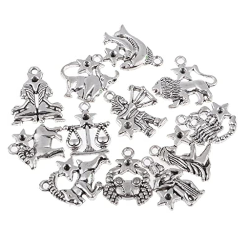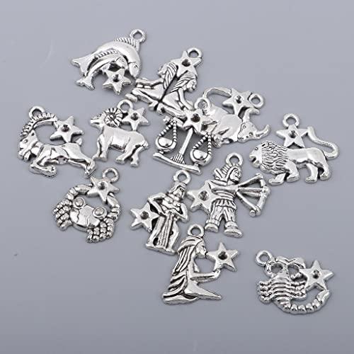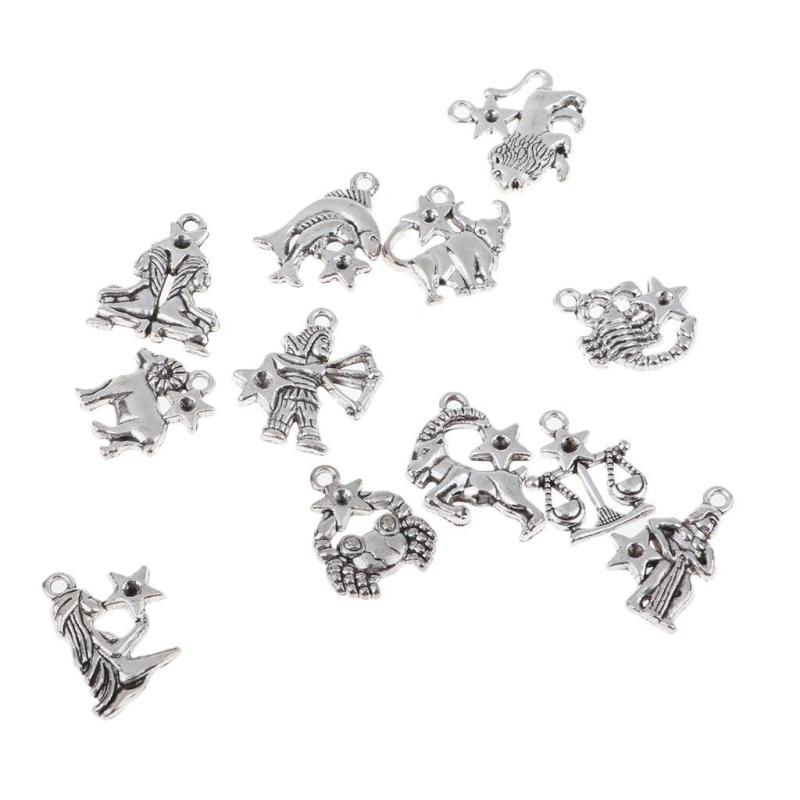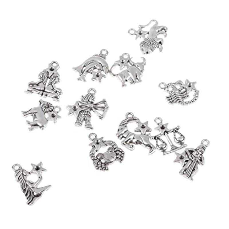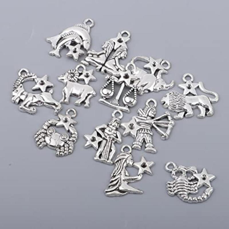 Add a vintage touch to your jewelry creations with these antique silver 12 zodiac charms pendants. Perfect for crafting unique necklaces, bracelets, and more.